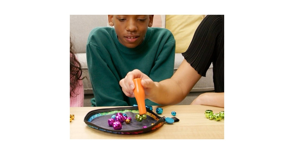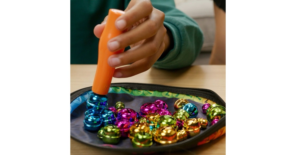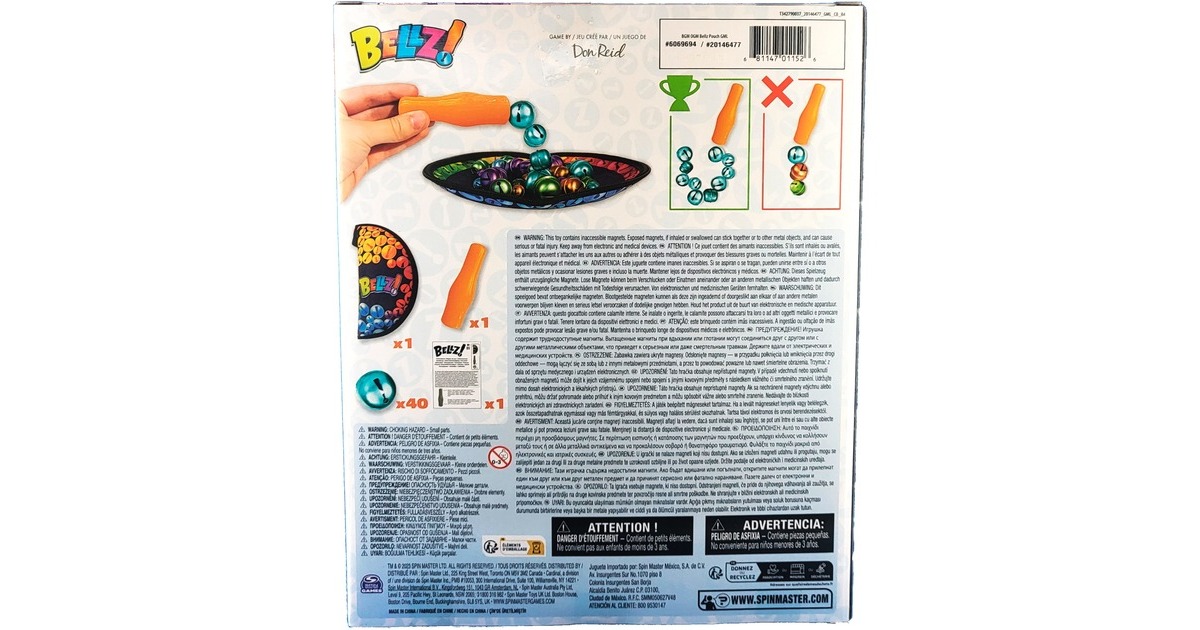 Bellz - das anziehende Geschicklichkeitsspiel für die ganze Familie. Bei Bellz gewinnen Feingefühl und Strategie: Die Spieler nutzen abwechselnd den magnetischen Stab, um die Glöckchen ihrer Farbe vom Spielfeld zu heben. Aber Vorsicht: Wer versehentlich auch gegnerische Glöckchen mitangelt, muss seinen Fang komplett wieder abgeben. Wer zuerst all seine Glöckchen eingesammelt hat, gewinnt. Bellz gewinnt man mit ruhiger Hand, Geduld und mit etwas strategischem Denken. Bellz ist das lustige Spiel mit Suchtfaktor - leicht zu lernen, aber schwer zu meistern wird es die ganze Familie begeistern. Praktisch überall spielbar: Die enthaltene robuste Neoprentasche ist einfach mitzunehmen - und dient gleichzeitig als Spielfeld. Anziehender Spielspaß für 2-4 Spieler ab 6 Jahren.Art.-Nr.: 100037787