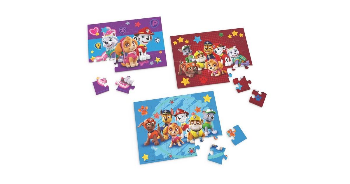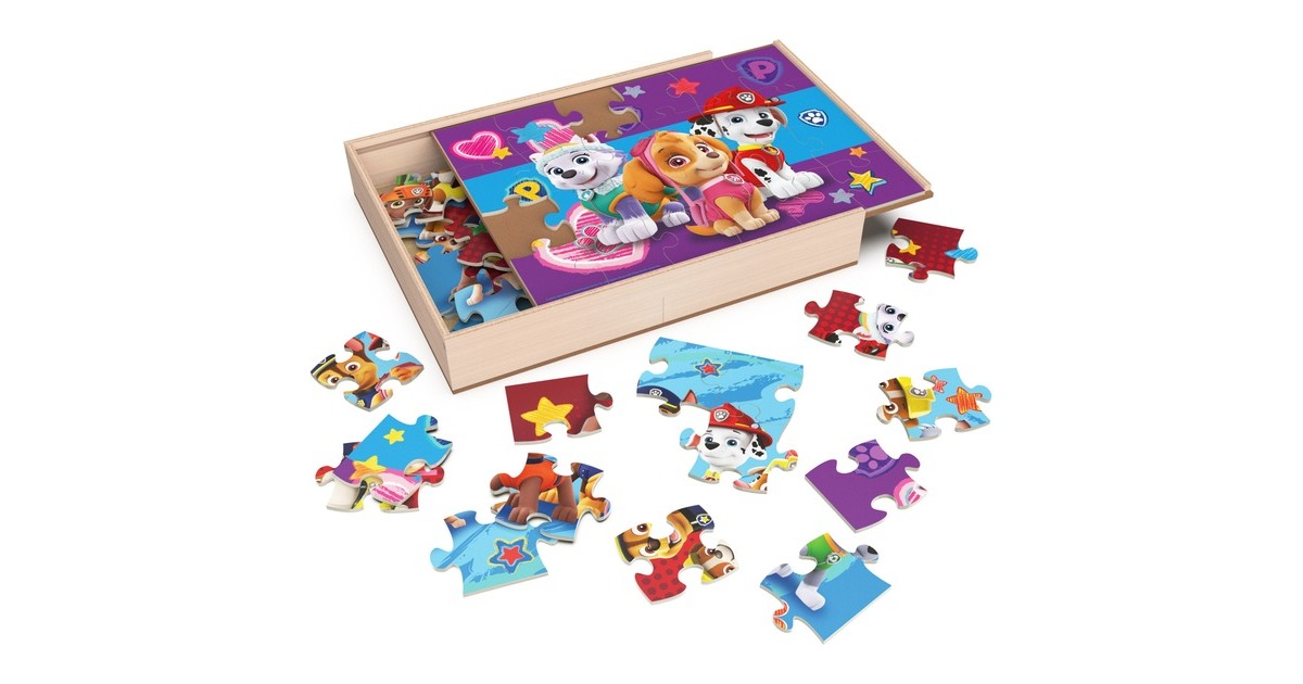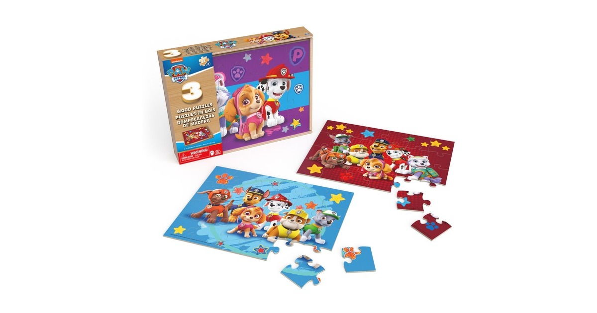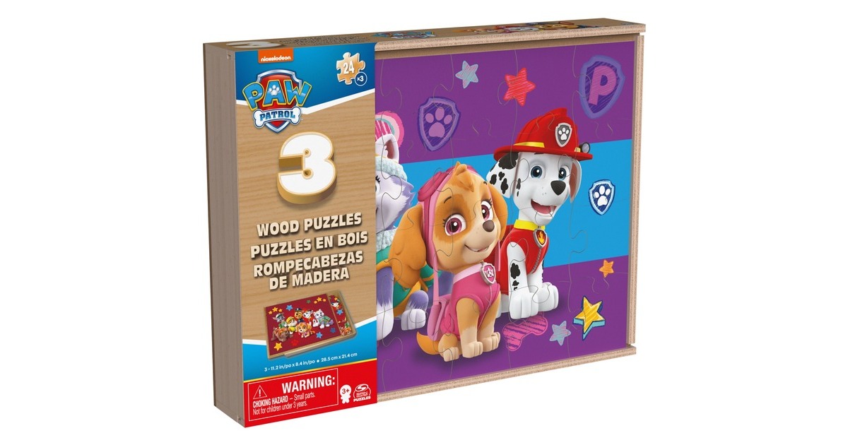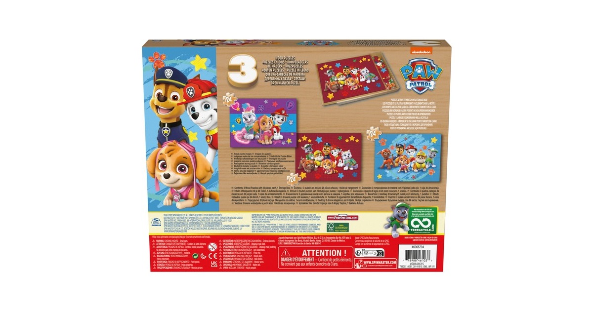 Die PAW Patrol - Holzpuzzle-Sammlung von Spin Master besteht aus drei 24-teiligen hochwertigen Holzpuzzles, die in einer stabilen Holzbox mit drei Fächern gut verstaut und transportiert werden können. Die Puzzles mit verschiedenen Motiven der PAW Patrol Charaktere haben eine Größe von 28,4x 21,3 cm und sind FSC-zertifiziert.Art.-Nr.: 100037892