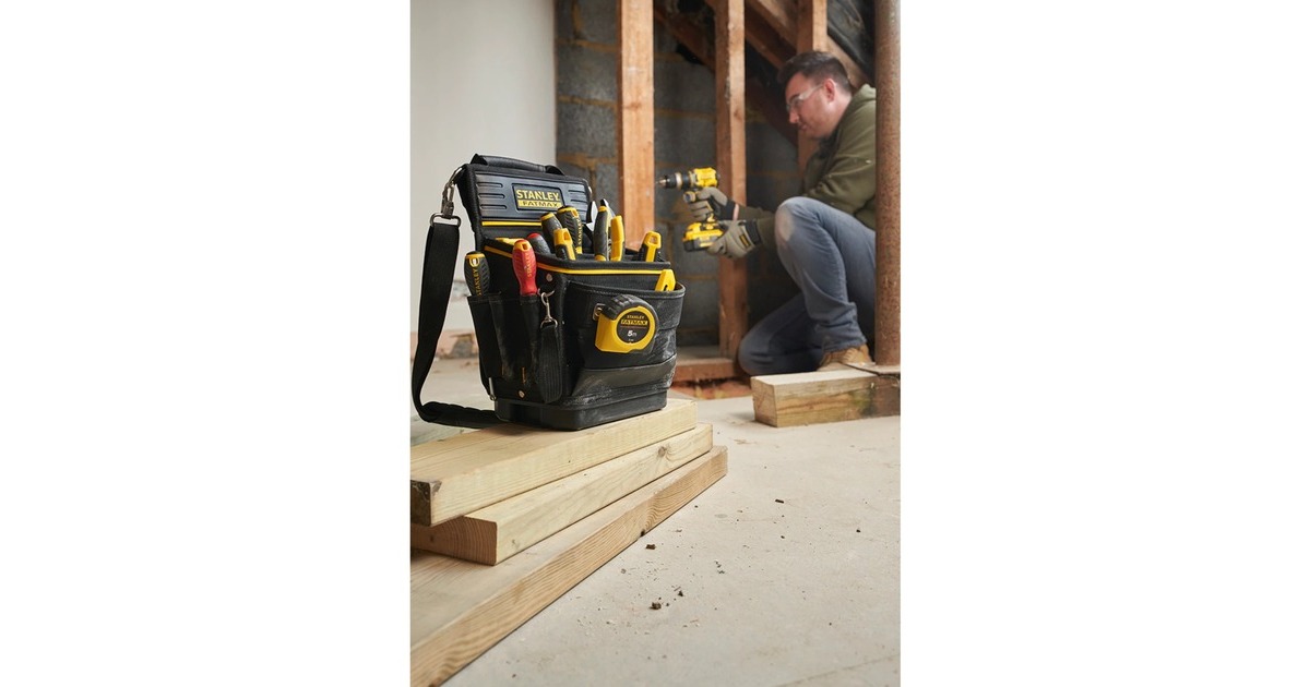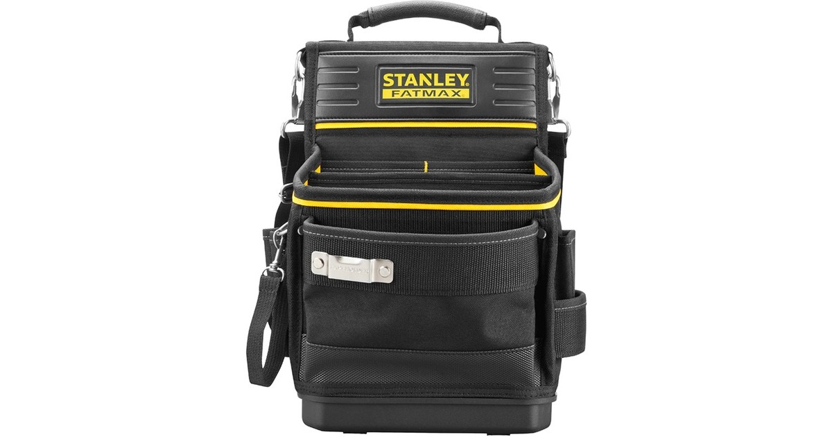 Der Fatmax PRO-STACK Organizer von Stanley besteht aus strapazierfähigem 600-Denier-Gewebe und trägt bis zu 10 Kilogramm. Er enthält neben verschiedenen Fächern, die eine effektive Sortierung von Werkzeug ermöglichen, auch einen Bandhalter für Maßbänder und ein Hammerfach. Diese Tasche hat einen stabilen und wasserdichten Kunststoffboden. Der gepolsterte Schultergurt sorgt für hohen Tragekomfort.Art.-Nr.: 1840088