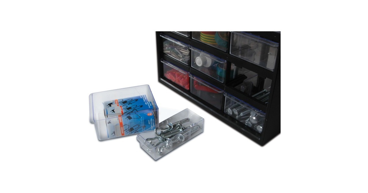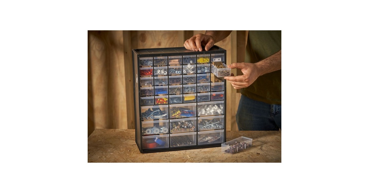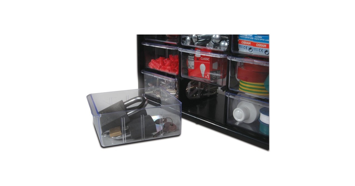 Das Kleinteilemagazin 1-93-978von STANLEY hat einen robusten, bruchfesten Kunststoffrahmen und 39 schlagfeste Einschübe aus transparentem Polypropylen für gute Sichtbarkeit des Inhalts. Die Kleinteilemagazine können ineinander gesteckt werden und ergeben so ein flexibles, modulares Aufbewahrungssystem. Das Kleinteilemagazin 1-93-978 eignet sich auch zur Wandmontage.Art.-Nr.: 1702467
