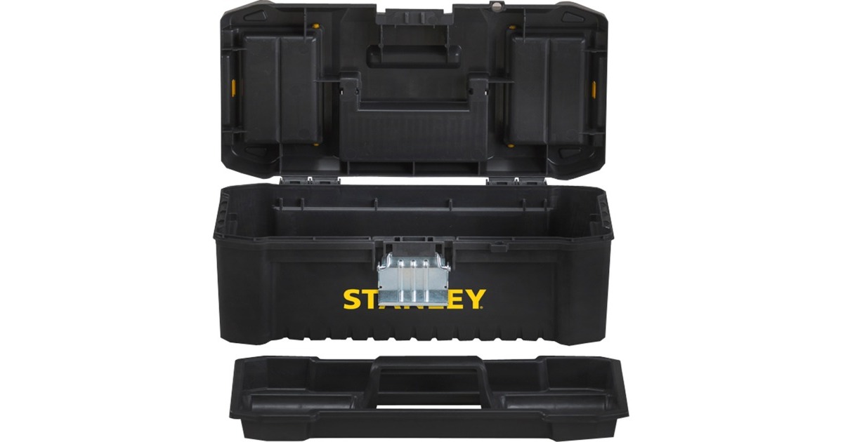 Die 16" Kunstoffbox "ESSENTIAL" von STANLEY hat stabile Metallschließen und eine Öse, um die Werkzeugbox mit einem Vorhängeschloss zu verschließen. Im Deckel befindet sich ein Organizer für Kleinteile und Zubehör. Eine herausnehmbare Trage für Werkzeuge und Zubehör ist ebenfalls im Lieferumfang enthalten.Art.-Nr.: 1280938