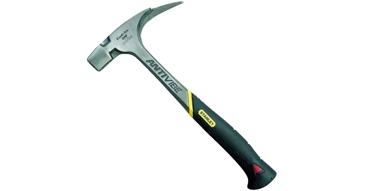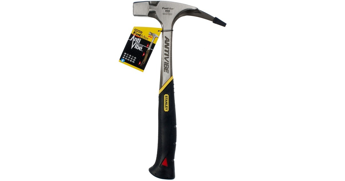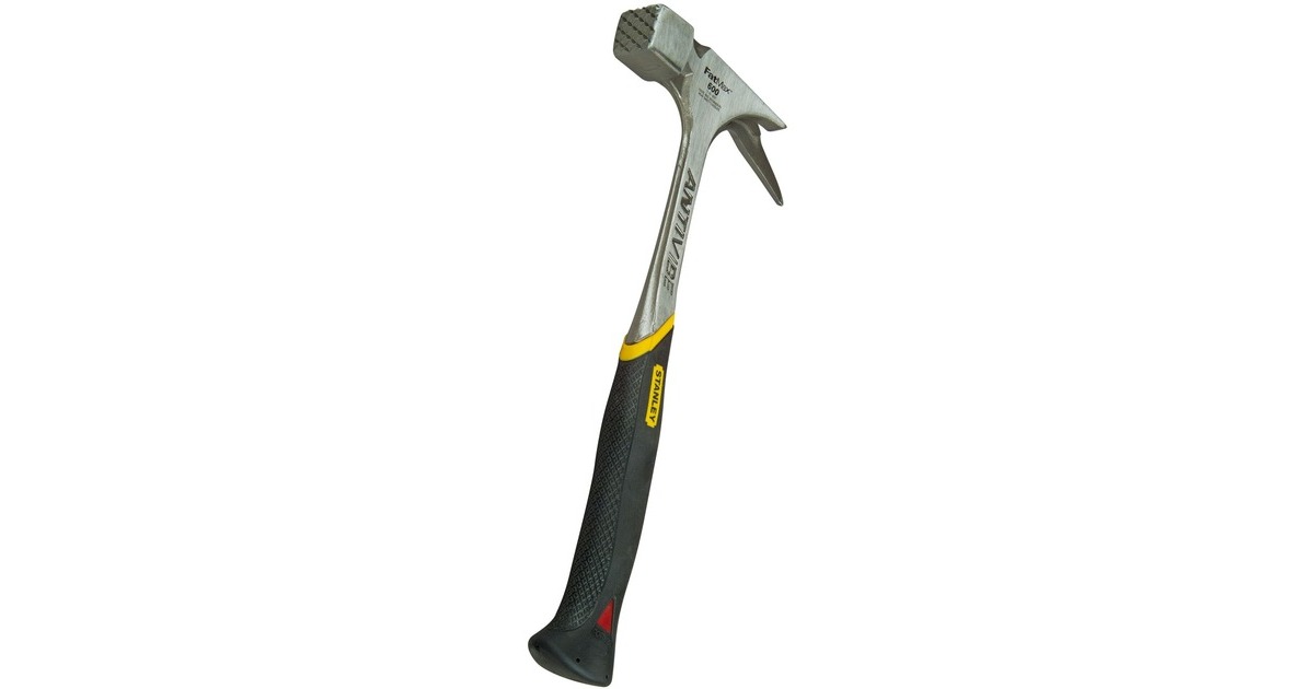Der Latthammer FatMax Antivibe 1-51-937 von STANLEY bietet eine Vibrationsdämpfung durch seinen Stiel in Stimmgabelform (in den USA zum Patent angemeldet). Kopf und Stiel sind aus einem Stück geschmiedet, der ergonomische DynaGrip-Griff sorgt für komfortablen und sicheren Halt, geringeren Kraftaufwand und geringeres Verletzungsrisiko, auch mit feuchten Händen. Der entspiegelter Schlagbereich des FatMax Antivibe bietet höhere Sicherheit. Latthämmer, auch Zimmermannshammer genannt, eignen sich zum Einschlagen und zum Herausziehen von Nägeln.Art.-Nr.: 1309365