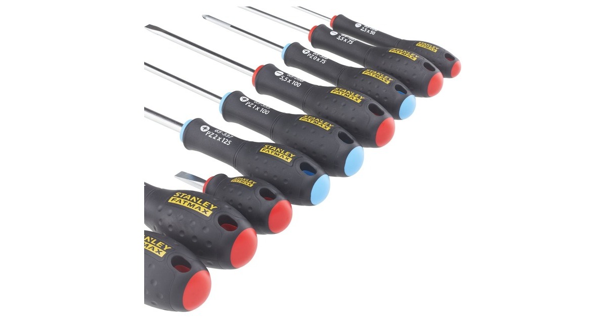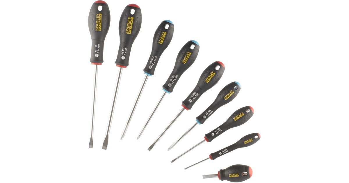 Das Schraubendreher-Set FatMax FMHT65424-0 von Stanley enthält neun Schraubendreher mit ergonomischem Soft-Grip Handgriff. Der rutschfeste Komfortgriff mit glatten und strukturierten Bereichen ergibt eine optimale Kombination aus hohem Griffkomfort und ergonomischem Krafteinsatz. Er ermöglicht eine optimale Anpassung an die Hand und damit ein maximales Anzugsmoment. Die Klinge aus Chrom-Vanadium Qualitätsstahl bietet hohe Widerstandskraft und reduzierte das Bruchrisiko der Spitze. Der Griff ist direkt auf die Klinge aufgebracht, das macht die Verbindung von Klinge und Griff praktisch unzerstörbar.Art.-Nr.: 1840164