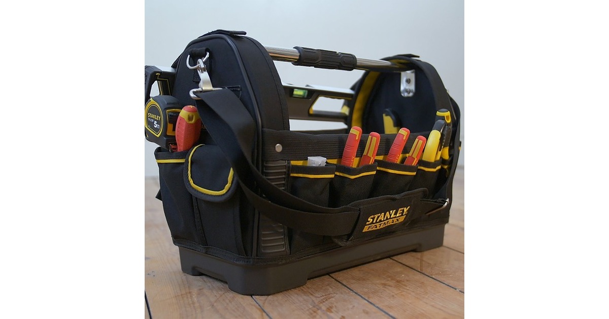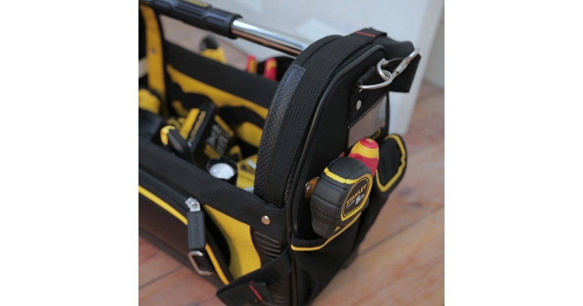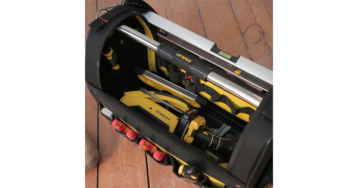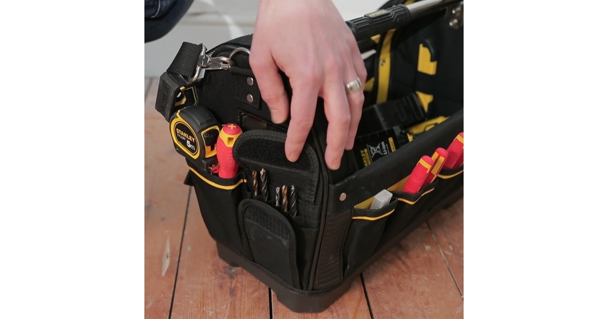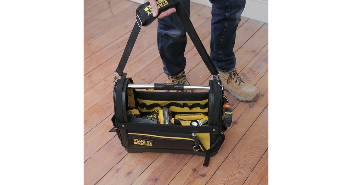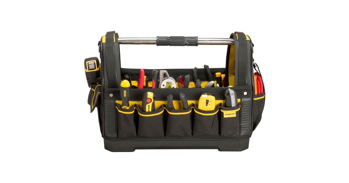 Die Stanley Werkzeugtrage FatMax bietet reichlich Platz für Werkzeuge und Zubehör. Die Werkzeugtrage überzeugt mit ihrer leicht zugänglichen Konstruktion mit einem stahlverstärkten Rahmen und dem wasserdichten, robusten Kunststoffboden. Elastische Halterungen im Inneren erleichtern die Befestigung verschiedener Werkzeuge. Kleinteile, wie Bits und Bohrer, finden in einem verschließbarem Fach Platz. An der Seite befindet sich ein größenverstellbares Fach für eine Säge. Ein seitliches Kabelfach und Halter für Maßbänder runden die Ausstattung der Werkzeugtrage FatMax ab.Art.-Nr.: 1702449