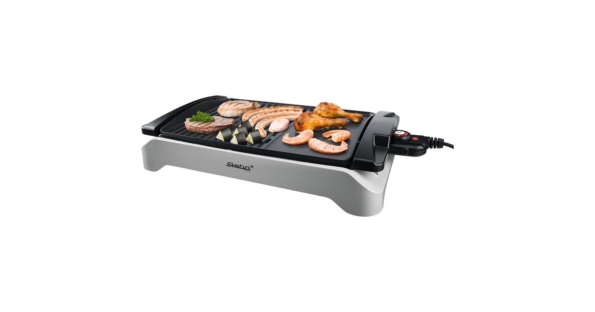 Der leistungsstarke, aber kompakte BBQ-Tischgrill VG 101 von Steba verfügt über eine Alu-Druckguss-Grillplatte zur Versiegelung des saftigen Geschmacks. Die Platte verfügt über einen gerippten und einen glatten Grillbereich, und heizt sich dank des integrierten Heizelements sehr schnell auf. Das integrierte Thermostat sorgt dafür, dass alle Speisen perfekt zubereitet werden. Überschüssiges Fett wird in eine Auffangschale geleitet. Die antihaftbeschichtete Grillfläche verhindert das Festkleben von Grillgut. Der BBQ-Tischgrill VG 101 lässt sich dank abnehmbarer Grillplatte komfortabel reinigen und mit seinen kompakten Abmessungen leicht aufbewahren. Art.-Nr.: 1395125