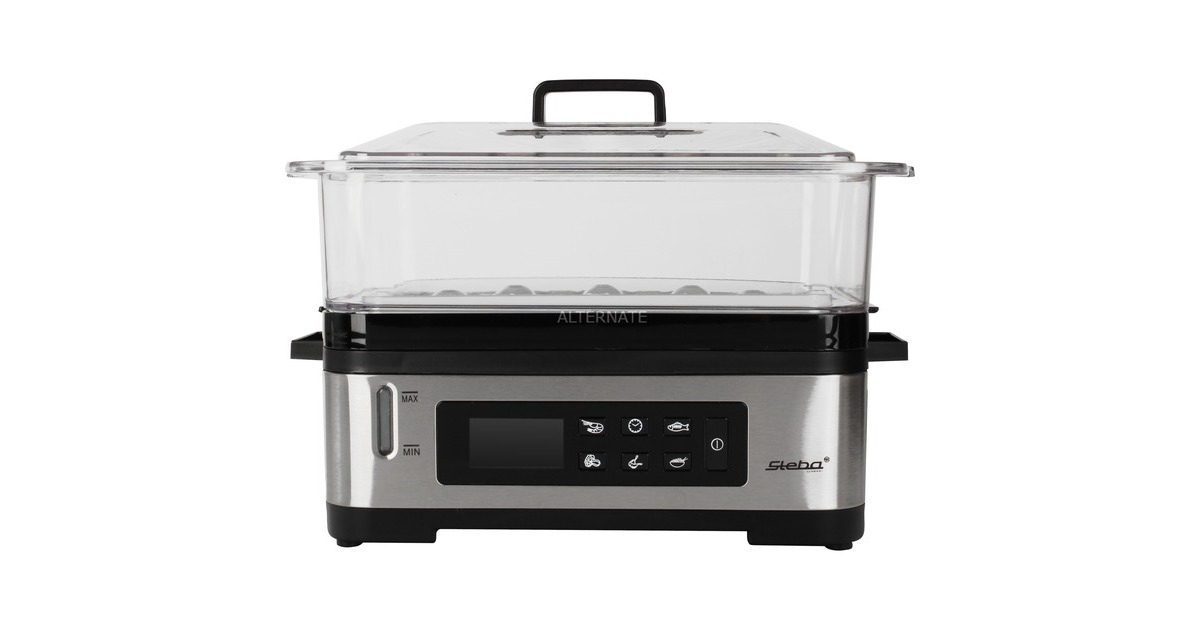 Der Dampfgarer DG 2 von Steba bietet zwei stapelbare Gareinsätze, einen seperaten Reiseinsatz sowie einen 30-Min.-Timer mit mit Signalton und Endabschaltung. Mit einer Leistung von 1200 Watt und der schnellen Dampferzeugung, lassen sich Speisen im DG 2 zügig dampfgaren. Die BPA-freien Gareinsätze sind mit herausnehmbaren Böden ausgestattet, so kann der Garraum von 3 auf 6 Liter erweitert werden. Für eine komfortable Bedienung sorgen das LCD-Display mit 5 Automatikprogrammen, der externe Wasserzulauf und die Warmhaltefunktion. Art.-Nr.: 1533921