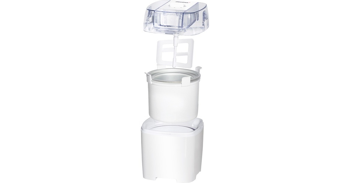 Mit der Eismaschine IC 20 von Steba lässt sich leckere Eiscreme ganz individuell nach dem eigenen Geschmack zubereiten. Der Isolierbehälter muss vor dem Gebrauch tiefgekühlt werden. Die Zubereitungsszeit beträgt, je nach Menge und Temperatur, 30 bis 40 Minuten. Der Behälter fasst ca. 1,5 Liter (bis zu 20 Kugeln Eis) und ist mit einer Nachfüllöffnung ausgestattet. Die rutschfesten Gummifüße sorgen für einen sicheren Stand während des Betriebs. Zur einfachen Reinigung ist die Eismaschine komplett zerlegbar und die meisten Einzelteile spülmaschinengeeignet.
