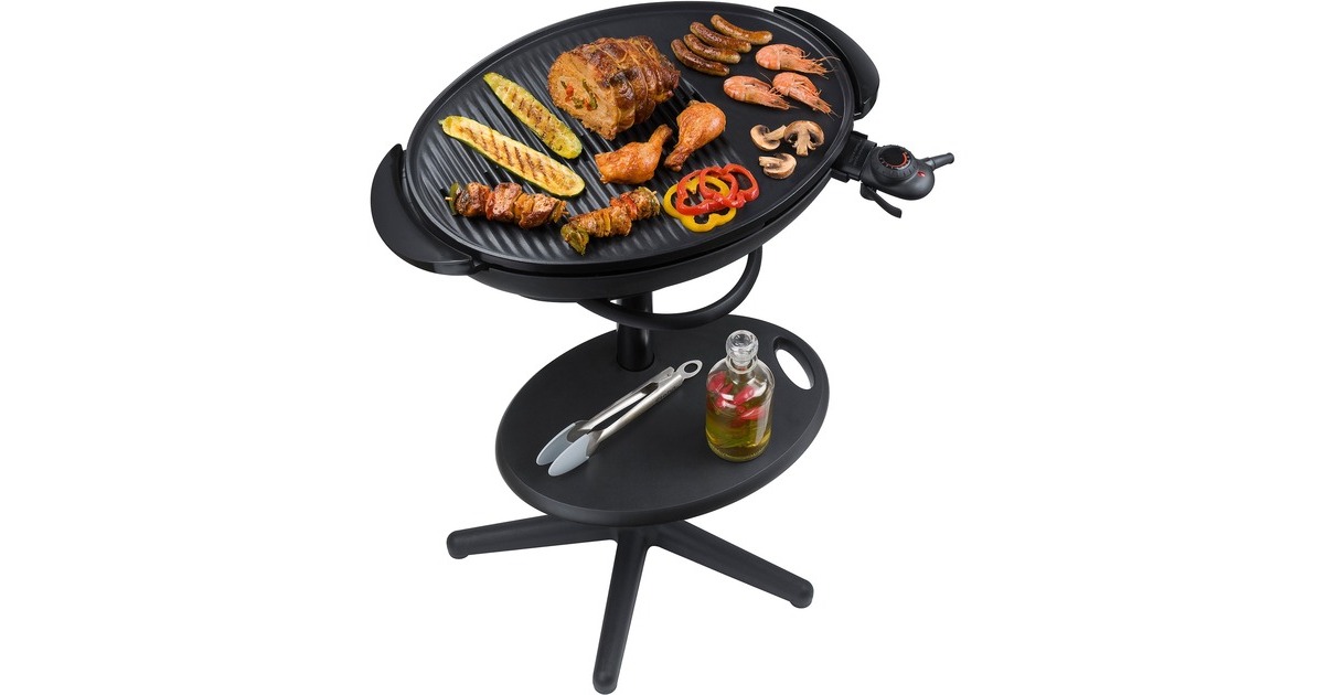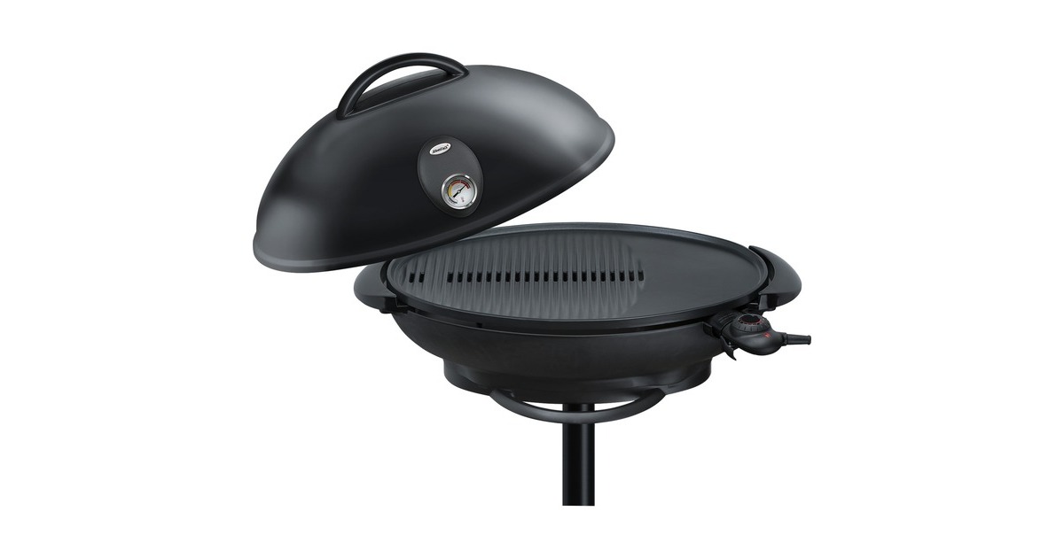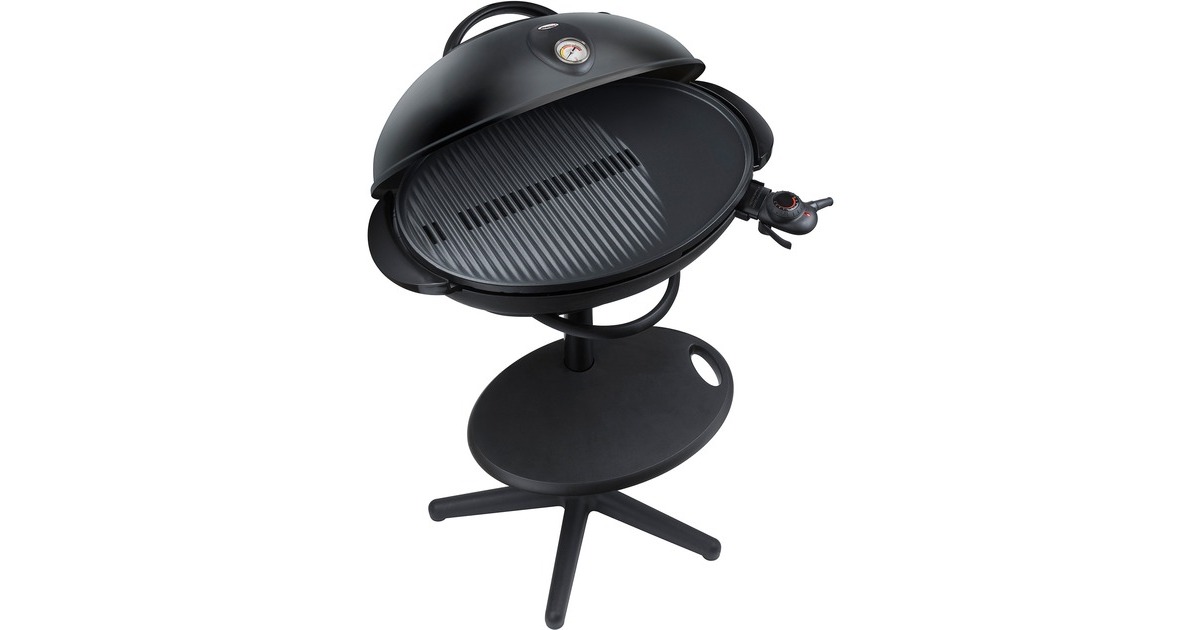 Der Standgrill Steba VG 350 BIG mit Grillhaube ist ideal für ein American Barbecue und zum Grillen im Garten. Die antihaft-beschichtete XXL-Grillplatte mit integriertem Heizelement ist in kürzester Zeit aufgeheizt und einsatzbereit. Die Temperaturregelung des VG 350 stellt optimale Grillergebnisse sicher. Die Grillhaube in schwarz dient als Windschutz und in geschlossenem Zustand zum Warmhalten des Grillgutes, ohne das es austrocknet. Mit dem stabilen, aber abnehmbaren Stativ kann der VG 350 leicht zu einem Tischgrill umfunktioniert werden.Art.-Nr.: 1462088