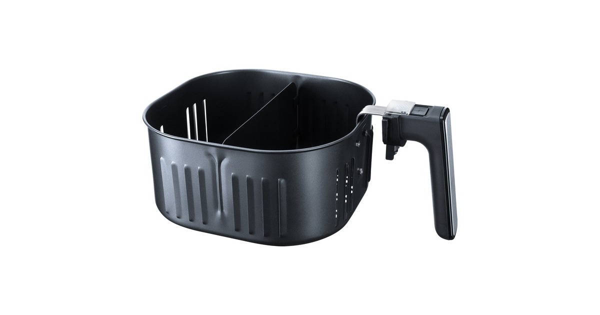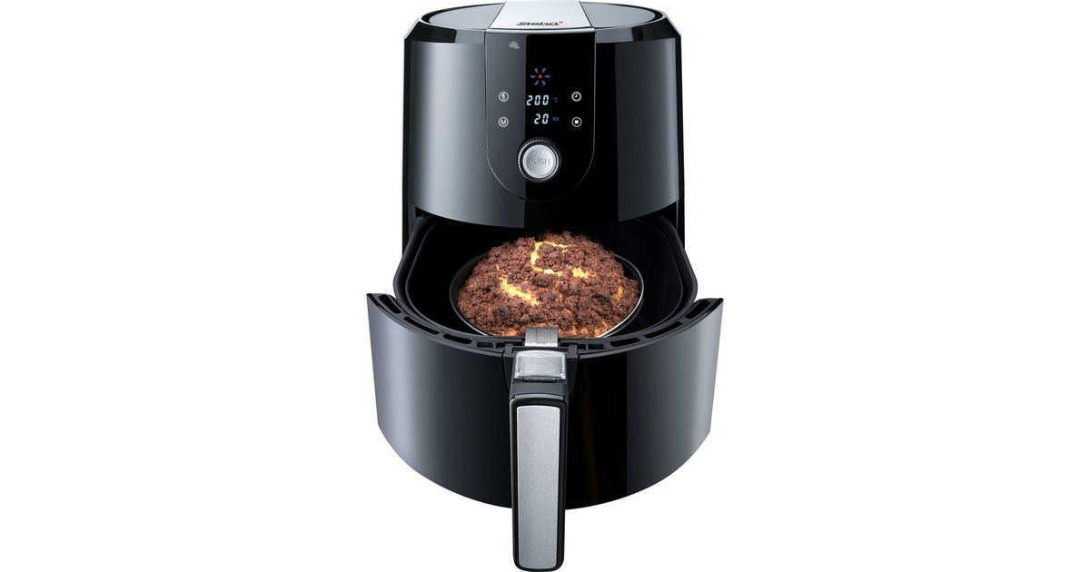 Mit der Heißluftfritteuse HF 5000 XL von Steba kann man energiesparend und mit bis zu 80% weniger Fett Frittieren, Backen und Grillen mit einem Gerät. Durch Heißluft-Technologie verteilt sich die Hitze schnell und gleichmäßig. Der antihaftbeschichtete Frittierkorb hat ein Volumen von 5,2 Litern. Die Bedienung ist einfach, durch den Temperaturregler kann man die passende Temperatur einstellen und dann braucht man nur noch den Timer zu stellen oder man wählt eines der sieben Automatikprogramme z.B. für Pommes, Hähnchen oder Fisch. Mit dem Korbtrenner kann der Frittierkorb in 2 Teile getrennt werden. Damit kann man zwei verschiedene Lebensmittel gleichzeitig garen. Ein Sicherheitsmikroschalter ermöglicht die Kontrolle des Garguts während des Frittierens ohne Unterbrechung des Programms. Die Warmhaltefunktion hält fertige Speisen bis zu 120 Minuten warm.