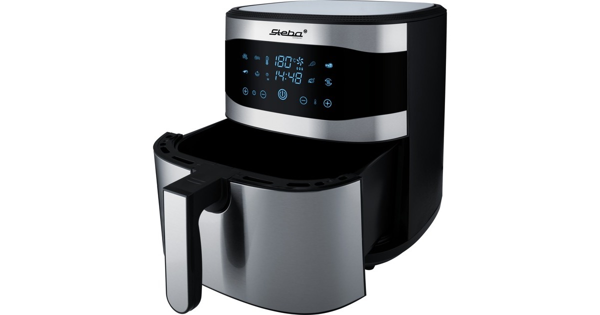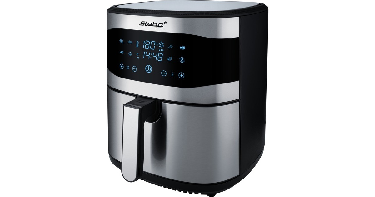 Mit der Heißluftfritteuse HF 8000 Family von Steba kann man energiesparend und mit bis zu 80% weniger Fett Frittieren, Backen und Grillen mit einem Gerät. Durch Heißluft-Technologie verteilt sich die Hitze schnell und gleichmäßig. Der antihaftbeschichtete Frittierkorb hat ein Volumen von 8 Litern. Die Bedienung ist einfach, durch den Temperaturregler kann man die passende Temperatur einstellen und dann braucht man nur noch den Timer zu stellen oder man wählt eines der acht Automatikprogramme z.B. für Pommes, Hähnchen oder Fisch. Ein Sicherheitsmikroschalter ermöglicht die Kontrolle des Garguts während des Frittierens ohne Unterbrechung des Programms. Art.-Nr.: 1818183