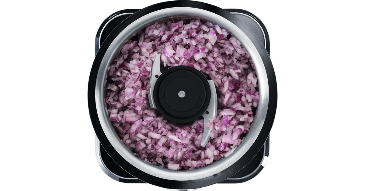 Der Multi-Zerkleinerer MG 500 ist kompakt und zerkleinert mit einer Leistung von 500 Watt Fleisch, Zwiebeln, Kräuter, Nüsse, eignet sich aber auch zur Zubereitung von Soßen, Pesto u.v.m. Durch den Einsatz der Impulsfunktion und von zwei der robusten Edelstahlmesser lassen sich Lebensmittel grob hacken und mit vier Messern kann man pürieren oder mahlen. Der entnehmbare Behälter aus Edelstahl fasst 500 ml und ist mit „Wipe-Off Technology“ ausgestattet. Diese verhindert ein Festsetzen der Lebensmittel an der Behälterwand. Auch in Bezug auf die Reinigung ist der MG 500 äußerst komfortabel, er lässt sich einfach zerlegen und hat spülmaschinengeeignete Teile. Art.-Nr.: 100045639