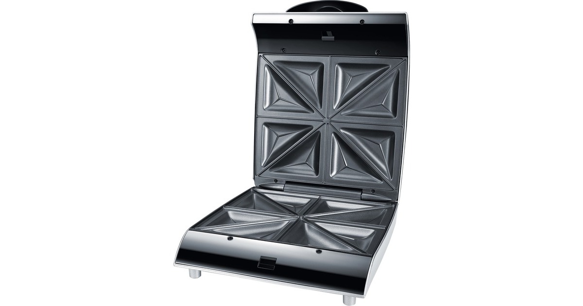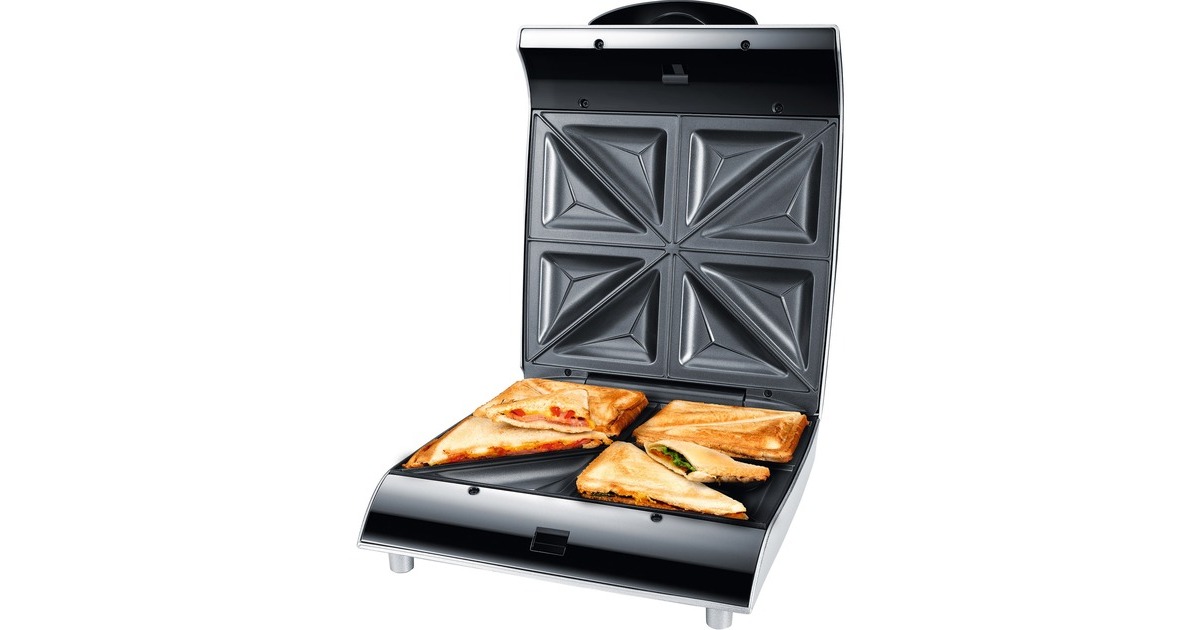 Der Sandwichmaker SG 40 eignet sich hervorragend für große American Toastscheiben und überzeugt mit einer starken Leistung von 1200 Watt. Zwei antihaft-beschichtete Backflächen backen zwei Sandwiches nebeneinander mit automatischer Temperaturkontrolle. Die Betriebs- und Temperaturkontrollleuchte informiert zuverlässig über das Ende der Backzeit des Sandwichmaker SG 40 und die Verriegelung am Handgriff bietet während des Backvorgangs die nötige Sicherheit für ein optimales Ergebnis.Art.-Nr.: 963452