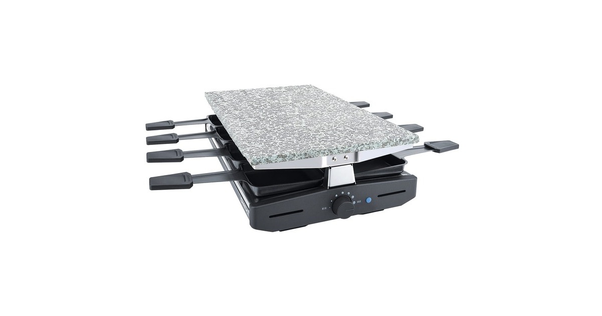 Das Steba Stein-Raclette RC 48 überzeugt mit einer großen Natursteingrillplatte für Kurzgebratenes oben und acht antihaft-beschichteten Pfännchen darunter. Mit einer Leistung von 1200 Watt lässt sich in geselliger Runde das ein oder andere Schmankerl einfach und schnell brutzeln. Das Design mit stufenlosem Temperaturregler, Kontrollleuchte und rutschfeste Füßen machen das Stein-Raclette RC 48 in der Bedienung einfach und sicher.Art.-Nr.: 934766