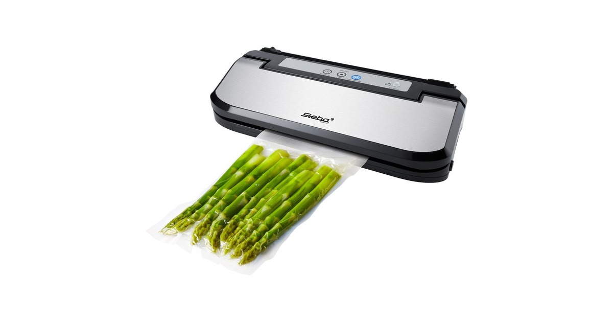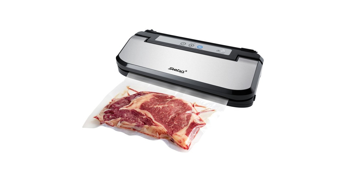 Der Vakuumierer Steba VK 7 ermöglicht Vakuumieren in nur kürzester Zeit. So kann man Lebensmittel um ein Vielfaches länger frisch halten. Im luftleeren Raum haben Gefrierbrand, Bakterien und Schimmelpilze keine Chance sich zu entwickeln. Auch Farbe, Form und Geschmack der Lebensmittel bleiben erhalten. Der VK 7 eignet sich für Folien bis 30 cm Breite und beliebiger Länge. Der Vakuumierer VK 7 ist mit komfortable Schnell- Einrastung, automatisches Absaugen und Versiegeln, extra-Versiegel-Funktion und einem integrierten Folienschneider ausgestattet. Dank der Stopp-Taste lässt sich der Vakuumiervorgang jederzeit unterbrechen. Im Lieferumfang ist ein Schlauchanschluss zum Vakuumieren in Behältern