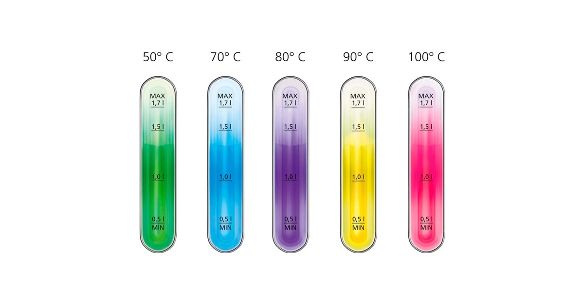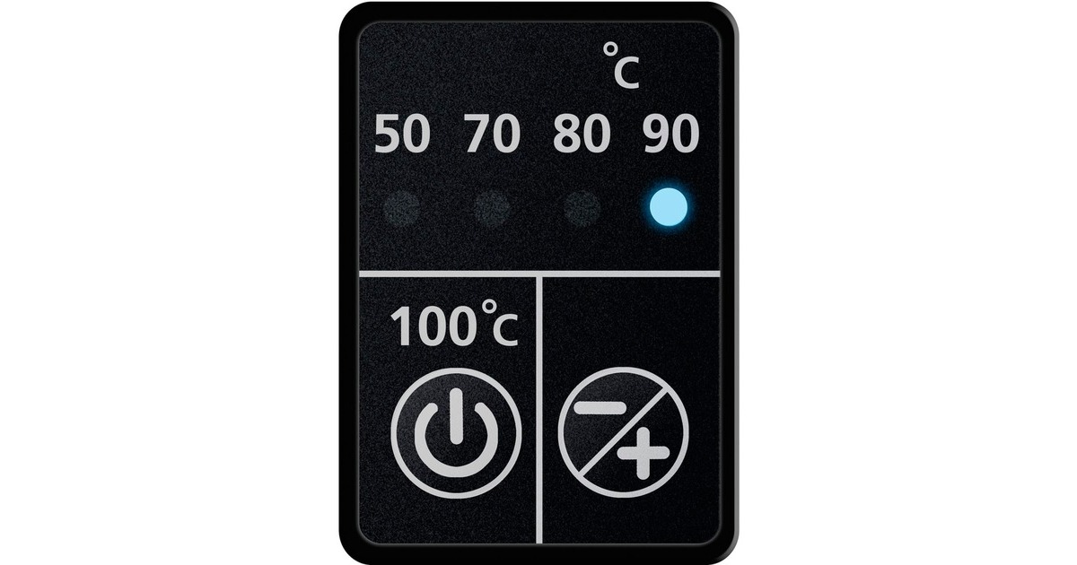 Temperatur einstellbar: 50, 70, 80, 90, 100° C mit farbiger Temperaturanzeige |