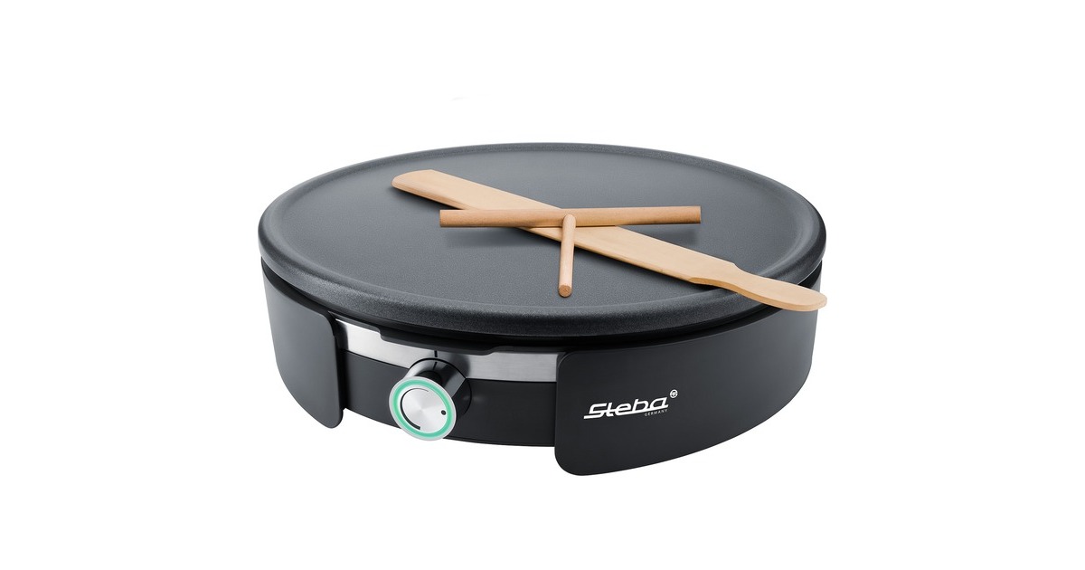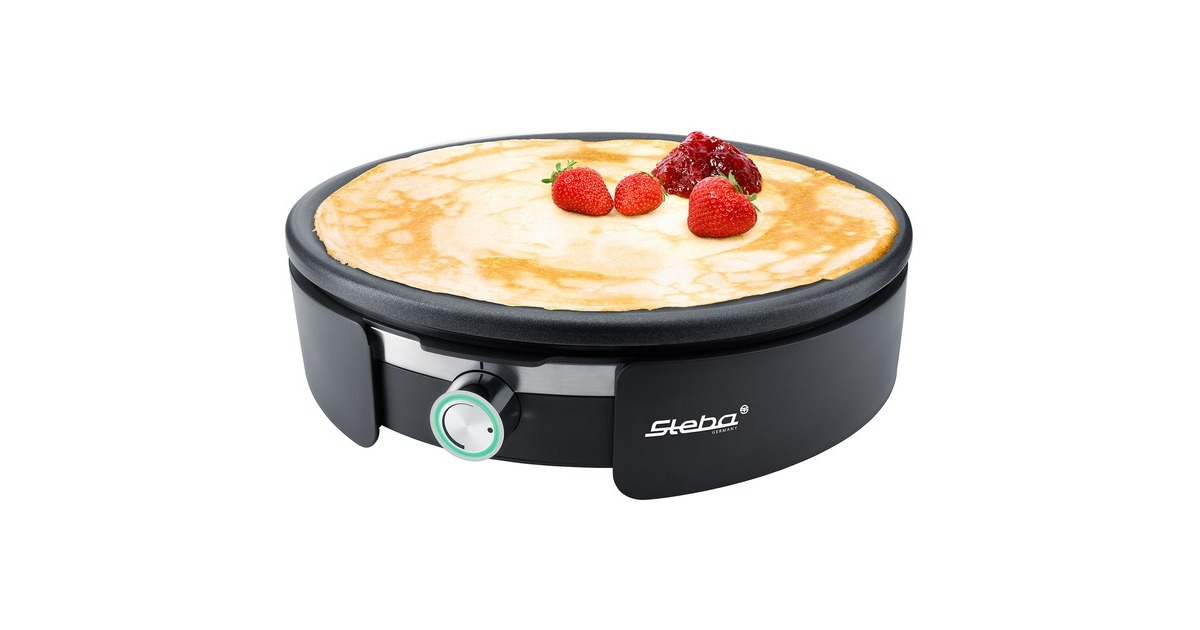 Mit dem Steba XXL Crêpesmaker CR 36 lassen sich schnell und einfach leckere Crêpes mit 35 cm Durchmesser zubereiten. Die Der CR 36 hat eine stufenlose Temperaturregelung für optimale Bräunung. Um die entnehmbare, antihaftbeschichtete Alu-Druckgussplatte zu schonen ist neben einem Teigrechen auch ein Crêpeswender aus Holz im Lieferumfang enthalten.Art.-Nr.: 1818180