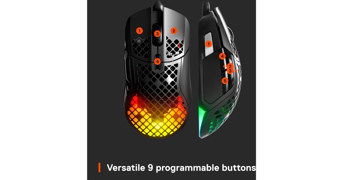 Die ultraleichte Aerox 5 Gaming-Maus von SteelSeries kombiniert ein geringes Gewicht von nur 66 g mit einem hochmodernen, ergonomischen Design und höchster Geschwindigkeit für ein nie dagewesenes Spielvergnügen. Mit ihren neun programmierbare Tasten, davon fünf Seitentasten und ein speziell entwickelter Kippschalter, sind alle Makros stets griffbereit, um spielentscheidende Aktionen in Sekundenschnelle durchzuführen. Die AquaBarrier-Technologie nach Schutzklasse IP54 schützt die inneren Schaltkreise der Aerox 5 vor sämtlichen Umwelteinflüssen. Der TrueMove Air Sensor bietet unerreichte Präzision, 1:1-Tracking und absolute Kontrolle dank bis zu 18.000 dpi, 400 ips, 40-G-Beschleunigung und Tilt-Tracking. Die Aerox 5 besitzt zudem Gleitfüße aus reinem PTFE sowie ein abnehmbares Super Mesh USB-C-Kabel für geschmeidige und präzise Mausbewegungen. Alle Anpassungen lassen sich komfortabel über die SteelSeries Engine vornehmen und die 3-Zonen-RGB-Beleuchtung kann an In-Game-Events angepasst oder mit weiteren SteelSeries-Produkten abgestimmt werden.Art.-Nr.: 1826039