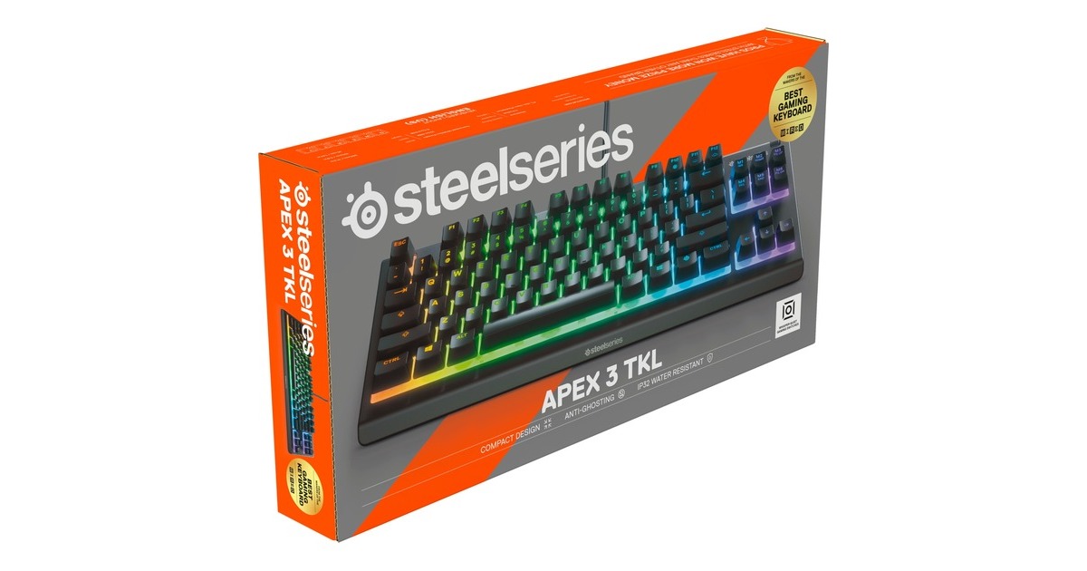 Die Gaming-Tastatur SteelSeries APEX 3 TKL vereint atemberaubende Beleuchtungseffekte und flüsterleise Gaming-Schalter in einem robusten, nach IP32 wassergeschützten Gehäuse. Ihr kompaktes TKL-Format ist unter Profi-E-Sportlern besonders beliebt, weil es eine flexible Positionierung zur Maximierung der Gaming-Performance bietet. Die RGB-Beleuchtung erfolgt über acht Zonen und lässt sich mit weiterem SteelSeries-Gaming-Gear synchronisieren. Die reibungsarmen, mechanischen Schalter sorgen für nahezu geräuschlosen Betrieb und unübertroffene Haltbarkeit mit sichergestellter Leistung für über 20 Millionen Tastendrücke. Die APEX 3 TKL verfügt des Weiteren über drei im Rahmen integrierte Kabelkanäle für maximale Ordnung auf dem Schreibtisch. Mit der Multimedia-Steuerung können Lautstärke, Helligkeit sowie die Sound-Steuerung on-the-fly angepasst werden. Um Schäden durch versehentliches Verschütten von Getränken und anderen Flüssigkeiten zu vermeiden verfügt die Tastatur zudem über einen IP32-Wasserschutz.Art.-Nr.: 1791860