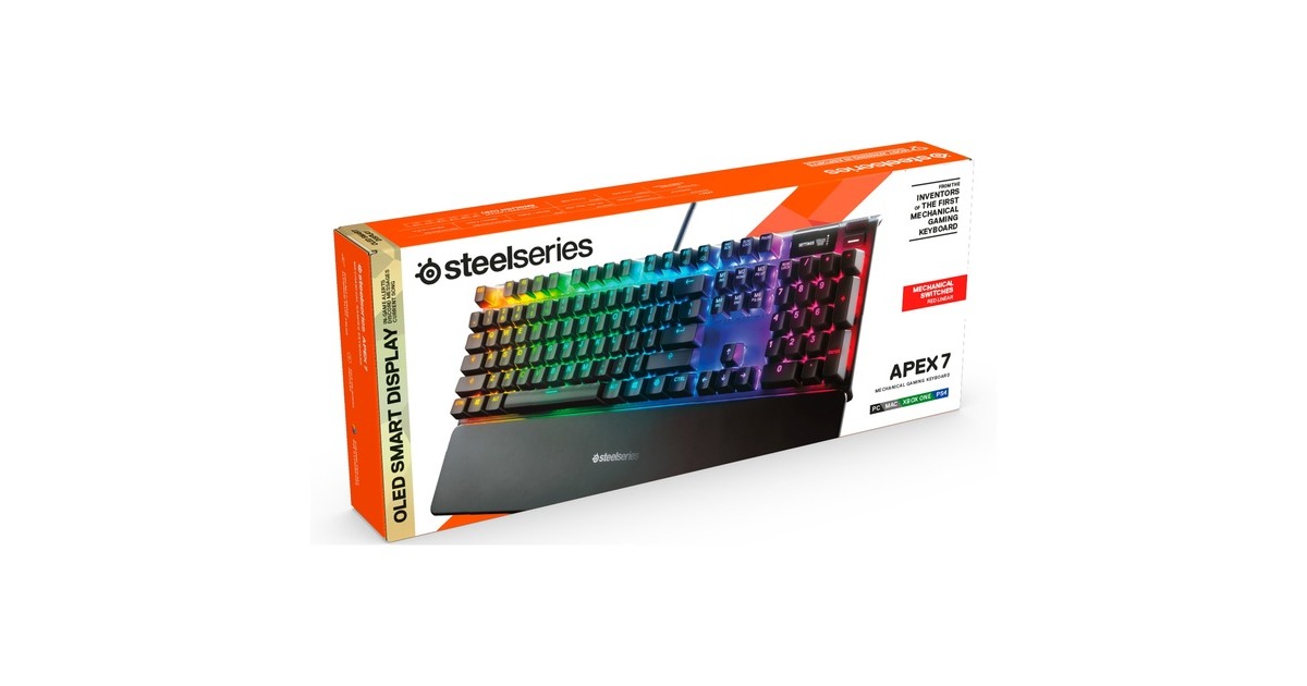 Die Gaming-Tastatur SteelSeries APEX 7 vereint atemberaubende Beleuchtungseffekte, relevante In-Game-Benachrichtigungen und mechnaische SteelSeries QX-Schalter in einem robusten Aluminiumrahmen mit Series-5000-Legierung. Das integrierte OLED Smart Display liefert Informationen direkt aus Spielen. Die RGB-Beleuchtung erfolgt für jede Taste einzeln und lässt sich mit weiterem SteelSeries-Gaming-Gear synchronisieren. Die widerstandsfähigen SteelSeries QX-Schalter mit einem Auslöseweg von nur 2 Millimetern, N-Key-Rollover und 100% Anti-Ghosting sorgen für blitzschnelle Reaktionen im Spiel und die abnehmbare, magnetische Handballenauflage liefert bei langen Gaming-Sessions den nötigen Komfort. Die APEX 7 verfügt des Weiteren nicht nur über drei im Rahmen integrierte Kabelkanäle für maximale Ordnung auf dem Schreibtisch, sie besitzt zudem einen USB-Passthrough-Port zum Anschließen eines Flash-Laufwerks, der Maus, des Headsets oder des Smartphones. Alle Einstellungen lassen sich auf dem Onboard-Speicher der APEX 7 mit fünf Profilen speichern und mit der Multimedia-Steuerung können Lautstärke, Helligkeit sowie die Sound-Steuerung on-the-fly angepasst werden.Art.-Nr.: 1549593