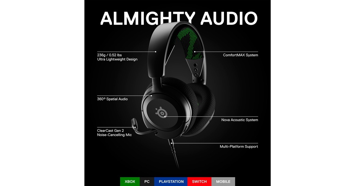 Das SteelSeries Arctis Nova 1X bietet nicht nur eine überzeugende Audioleistung, sondern besticht auch mit seinem Design. Das Nova Acoustic System mit hochwertigen Audiotreibern und 360° Spatial Audio erzeugt einen satten und gleichzeitig klaren Klang auf zahlreichen Plattformen - egal ob Konsole, PC oder auf mobilen Geräten. Durch das geringe Gewicht und dem ComfortMAX System sitzt es auch nach stundenlangem Tragen bequem auf den Ohren. Das ClearCast Gen2 Noise-Cancelling Mikrofon sorgt dafür, dass jedes Wort maximal klar verstanden werden kann.Art.-Nr.: 1860745