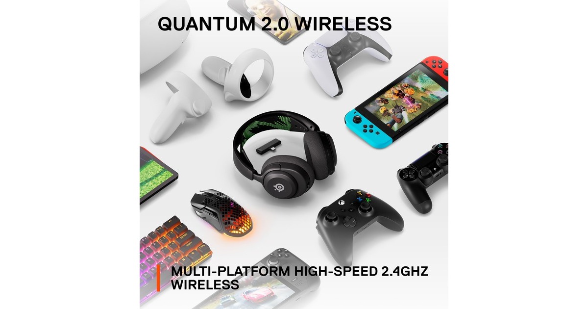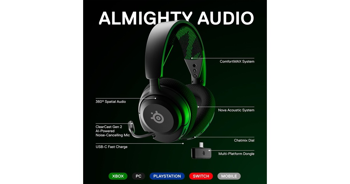Mit dem SteelSeries Arctis Nova 4X Gaming-Headset lässt man Standard-Audio hinter sich und taucht ein in die Welt von Almighty Audio: Eine perfekte Symbiose aus SteelSeries-Hardware und der Sonar-Software als Teil des Nova-Audiosystems. Die eigens für das Arctis Nova hergestellten Treiber sorgen für hochwertiges Audio, kristallklare Bässe und hochauflösenden In-Game-Sound der Spitzenklasse. Die Sonar Audio Software Suite ergänzt die Hardware perfekt und eröffnet völlig neue Möglichkeiten zur individuellen Anpassung des Sounds dank parametrischem 10-Band-Equalizer. Das einziehbare ClearCast Gen 2 Mikrofon blendet Umgebungsgeräusche mithilfe der leistungsstarken KI-Algorithmen der Sonar-Software aus, um die Sprachübertragung zu optimieren. Die innovative Wireless-Technologie Quantum 2.0 des Arctis Nova 4X sorgt für extrem niedrige Latenzen mit 2,4 GHz über einen Mini-USB-C-Dongle. Es lässt sich zudem dank Plug&Play einfach mit der bevorzugten Plattform verbinden – darunter PC, Mac, PlayStation 5, Switch, Meta Quest 2, Steam Deck sowie USB-C-Mobilgeräte und -Tablets. Mit 36 Stunden Akkulaufzeit kann man über 1,5 Tage lang spielen und in nur 15 Minuten Ladezeit über USB-C 6 Stunden Spielvergnügen genießen. Das Comfortmax-System des Arctis Nova 4X besteht aus höhenverstellbaren, drehbaren Ohrmuscheln mit einem AirWeave Memory Foam Ohrpolster sowie einem flexiblen Kopfriemen. Darüber hinaus lässt sich über die Bedienelemente des Headsets die Lautstärke blitzschnell mit einem Schieberegler einstellen oder das Mikrofon mit einer Taste stummschalten.Art.-Nr.: 1915657