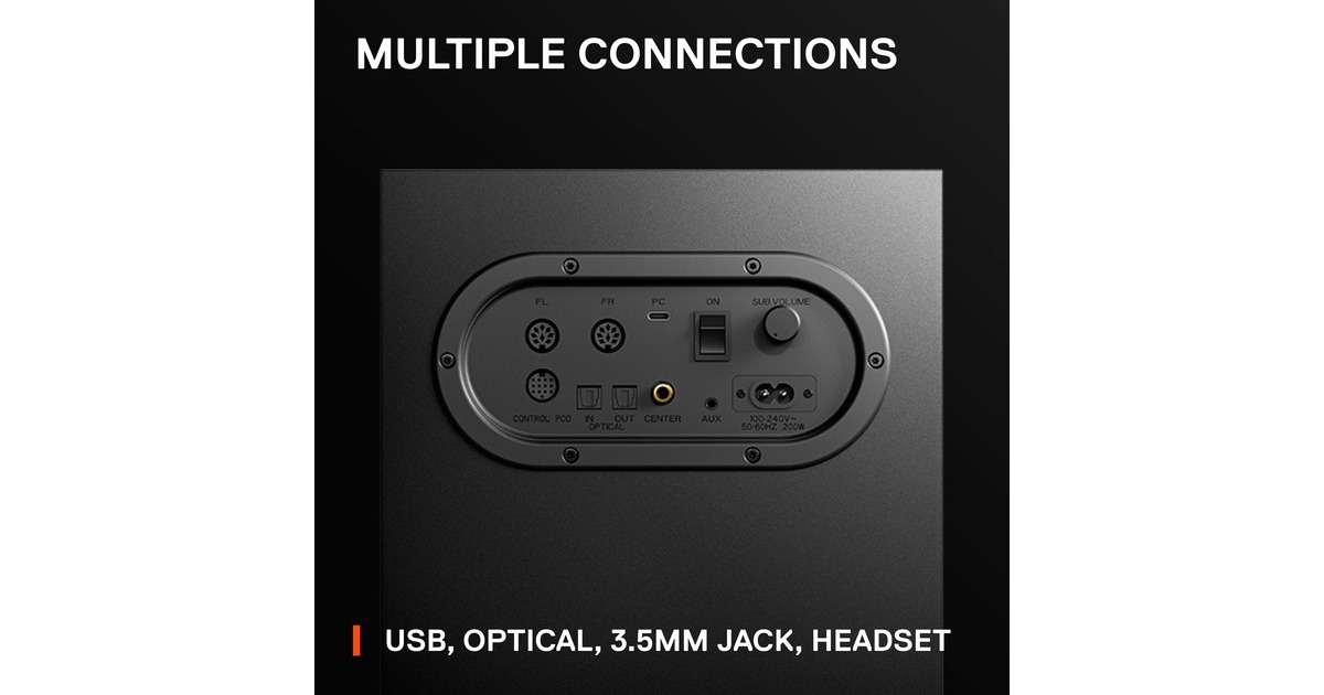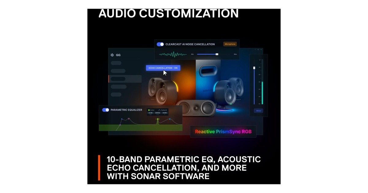 Das SteelSeries Arena 9 Lautsprechersystem maximiert den Sound und liefert eine Immersion, der jeden Gaming-Moment noch realer wirken lässt. Pro Lautsprecher verrichtet ein 4" großer Soundtreiber (6.5" Subwoofer Treiber) sein Werk und lässt dabei auch feine Nuancen zur Geltung kommen. Um die Installation so einfach wie möglich zu machen, lässt sich das Arena 9 einfach per USB mit dem Computer verbinden - die Lautsprecher fungieren dabei kabellos. Endgeräte können einfach per 3,5 mm Klinke, optischem Kabel oder alternativ über Bluetooth verbunden werden, außerdem liefert das Arena 9 mit ihrer PrimSync RGB Beleuchtung auch eine ideale Lösung für ein rundum optimiertes Gaming-Erlebnis, dass mittels Sonar Audio Software individualisiert und angepasst werden kann.Art.-Nr.: 1842159