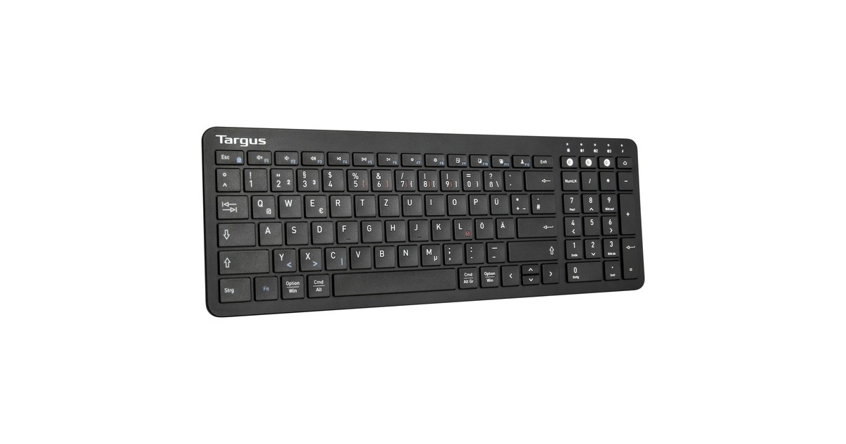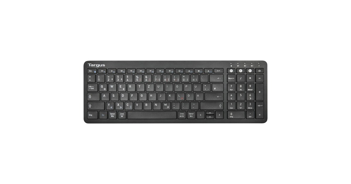 Die Bluetooth-Universal-Tastatur von Targus in deutscher Sprache mit antimikrobiellem DefenseGuard Schutz bietet universelle Kompatibilität und verfügt über Speicher für das Koppeln mit bis zu drei Geräten. Die Tastatur vereint den praktischen Nutzen eines separaten Ziffernblocks mit einem schlanken Design und lässt sich mühelos im Rucksack transportieren oder ganz leicht ordentlich verstauen, falls sie gerade nicht benötigt wird. Mit der zuverlässigen Bluetooth-5.1-Verbindung kann die Tastatur problemlos mit Smartphone, Tablet oder Laptop gekoppelt werden, ganz gleich ob iOS, Android oder Windows, und nahtlos mit den QWE-Tasten zwischen Geräten hin- und hergewechselt werden. Targus Produkte mit DefenseGuard werden mit BPR- und EPA-konformen antibakteriellen Silberwirkstoffen behandelt, um während der gesamten Lebensdauer des Produkts einen Rundumschutz gegen Bakterien zu bieten. Art.-Nr.: 1796155