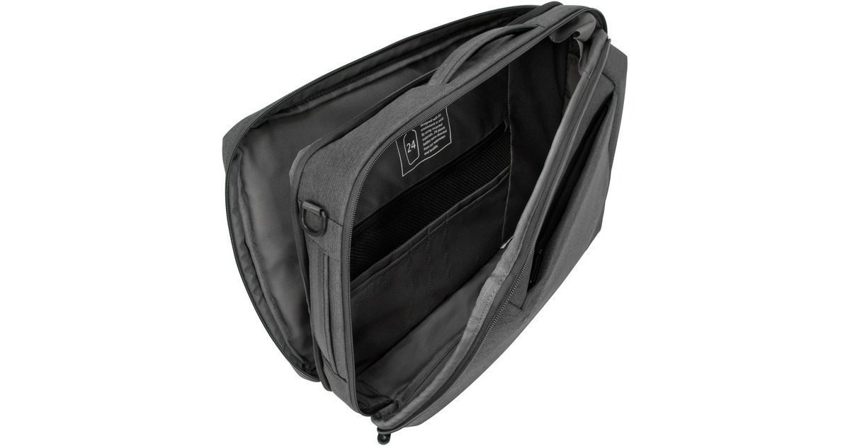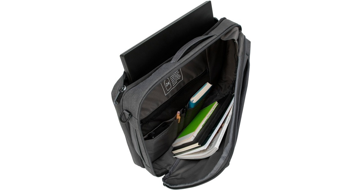 Das Gewebe für den Cypress Convertible Rucksack mit EcoSmart wurde aus 24 recycelten Kunststoffflaschen hergestellt. Das gut durchdachte Design schützt also nicht nur Arbeitsutensilien, sondern auch die Umwelt. Dieser umweltfreundliche Rucksack bietet Platz für einen 39,6 cm (15,6") Notebook und lässt sich dank des einzigartigen Designs als Rucksack oder Aktentasche verwenden. Zu den weiteren Ausstattungsmerkmalen gehören ein gepolstertes Fach zur Aufbewahrung des Noteboooks, zwei Hauptfächer für Akten und Alltagsutensilien, ergonomische Schulterriemen für mehr Komfort beim Pendeln und ein Trolley-Gurt zum Befestigen des Convertible Rucksacks an Rollkoffern. Diese Tasche wurde speziell für mehrere Tragemöglichkeiten entworfen und kann entweder als Rucksack oder als Aktentasche verwendet werden. Die wandelbare Tasche verfügt über einen Tragegriff an der Oberseite und einen seitlichen Tragegriff sowie über Schultergurte, die verstaut werden können, wenn sie nicht benötigt werden.Art.-Nr.: 1635085