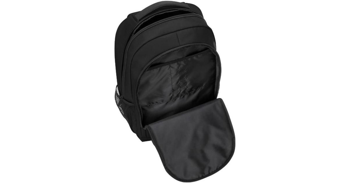 Frontfach, gepolstertes Laptopfach, zweites Fach mit Platz für Utensilien, 2 Netztaschen für Wasserflaschen, Verstecktasche vorne, Kabeldurchführung |