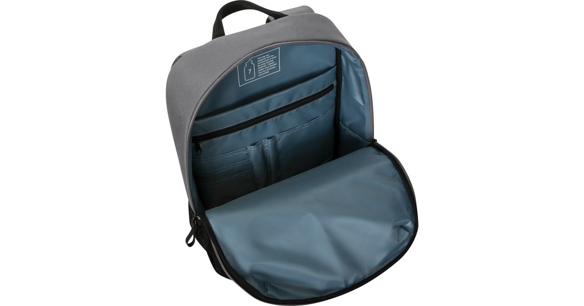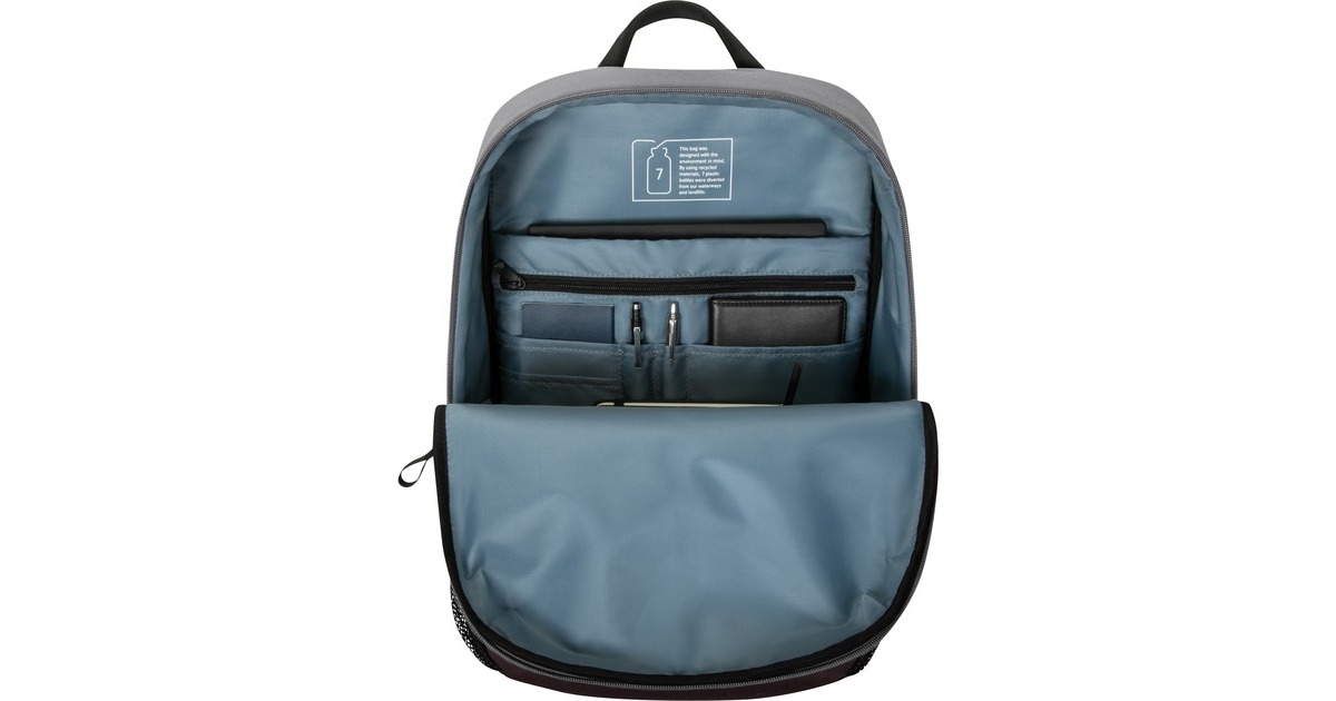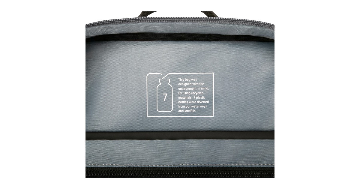 Der funktionale Sagano EcoSmart Pendlerrucksack ist für Notebooks bis 39,6 cm (15,6") geeignet. Er verfügt über ein gepolstertes Laptopfach und eine große Vordertasche mit Reißverschluss für leicht zugängliche Gegenstände. Im Inneren des Rucksacks befindet sich eine praktische Workstation für Stifte, Ausweise und Schlüssel, während die Außenseite zwei praktische Seitentaschen für Wasserflaschen hat. Eine Reißverschlusstasche auf der Rückseite ermöglicht die sichere Aufbewahrung von Telefon oder Brieftasche. Hinzu kommt ein verstecktes Fach mit integriertem Regenschutz. Die konturierten Schultergurte und die Mesh-Polsterung auf dem Rücken sorgen für eine gute Luftzirkulation. Das Material dieses Rucksacks wurde aus 7 recycleten PET-Flaschen gewonnen. Art.-Nr.: 1844007