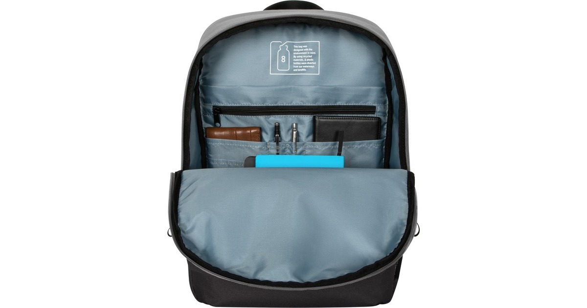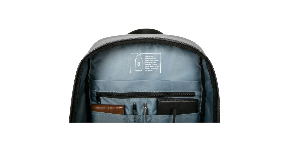 Der funktionale Sagano EcoSmart Pendlerrucksack ist für Notebooks bis 39,6 cm (15,6") geeignet. Er verfügt über ein gepolstertes Laptopfach und eine große Vordertasche mit Reißverschluss für leicht zugängliche Gegenstände. Im Inneren des Rucksacks befindet sich eine praktische Workstation für Stifte, Ausweise und Schlüssel, während die Außenseite zwei praktische Seitentaschen für Wasserflaschen hat. Eine Reißverschlusstasche auf der Rückseite ermöglicht die sichere Aufbewahrung von Telefon oder Brieftasche. Hinzu kommt ein verstecktes Fach mit integriertem Regenschutz. Die konturierten Schultergurte und die Mesh-Polsterung auf dem Rücken sorgen für eine gute Luftzirkulation. Das Material dieses Rucksacks wurde aus 8 recycleten PET-Flaschen gewonnen. Art.-Nr.: 1844006