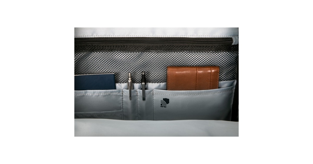 Der umweltfreundliche Sagano EcoSmart Reiserucksack aus recycelten Materialien wurde entwickelt, um Laptops bis zu einer Größe von 39,56 cm (15,6") und andere wichtige Utensilien mit Stil und Leichtigkeit zu transportieren - egal ob auf einem Flug oder auf dem Fahrrad. Er bietet mehrere Fächer und modernes Design. Das SafePort Sling Protection-System schützt den den Laptop von innen: Es verwendet eine Aufhängung, die zwischen den gegenüberliegenden Wänden des Hauptfachs angebracht ist, so dass der Laptop in der Schwebe bleibt und bei einem versehentlichen Sturz kein Kontakt zwischen dem Gerät und dem Taschenboden besteht. Hinzu kommt ein RFID-Fach für sensible Daten. Mit seinen ergonomischen Schultergurten ist dieser Reiserucksack bequem zu tragen, sein atmungsaktiver Netzrücken sorgt für eine gute Luftzirkulation. Mit dabei ist auch ein Trolley-Gurt, mit dem er an Rollgepäck befestigt werden kann. Eine versteckte Regenhülle, ist ebenfalls mit dabei. Das Material für diesen Rucksack wurde aus 9 recycelten PET-Flaschen hergestellt.Art.-Nr.: 1843999