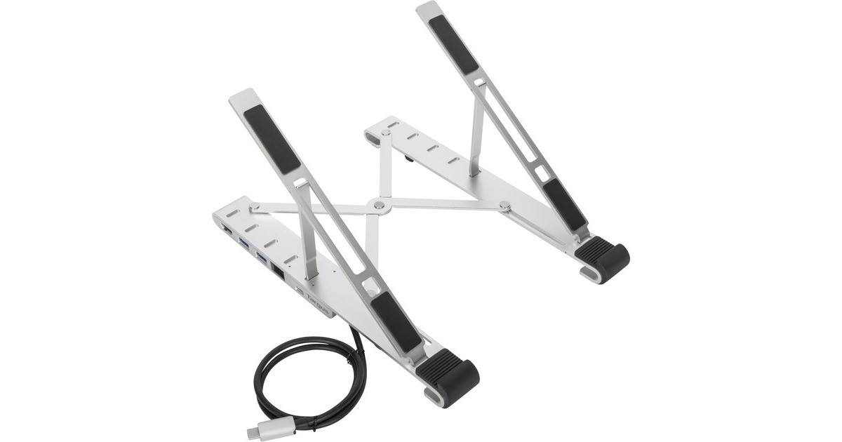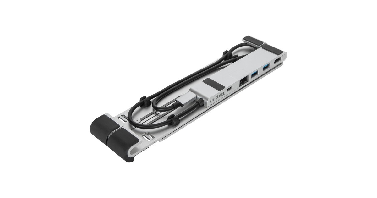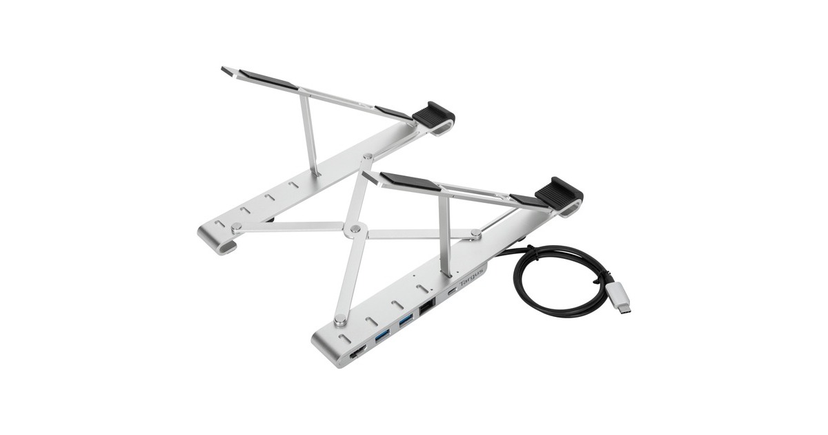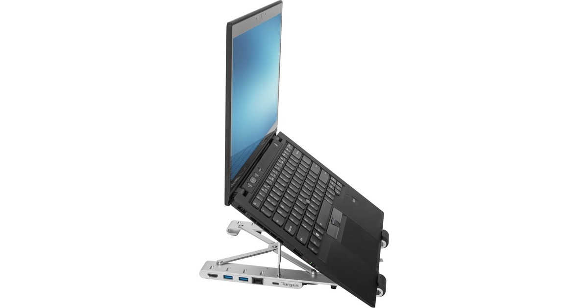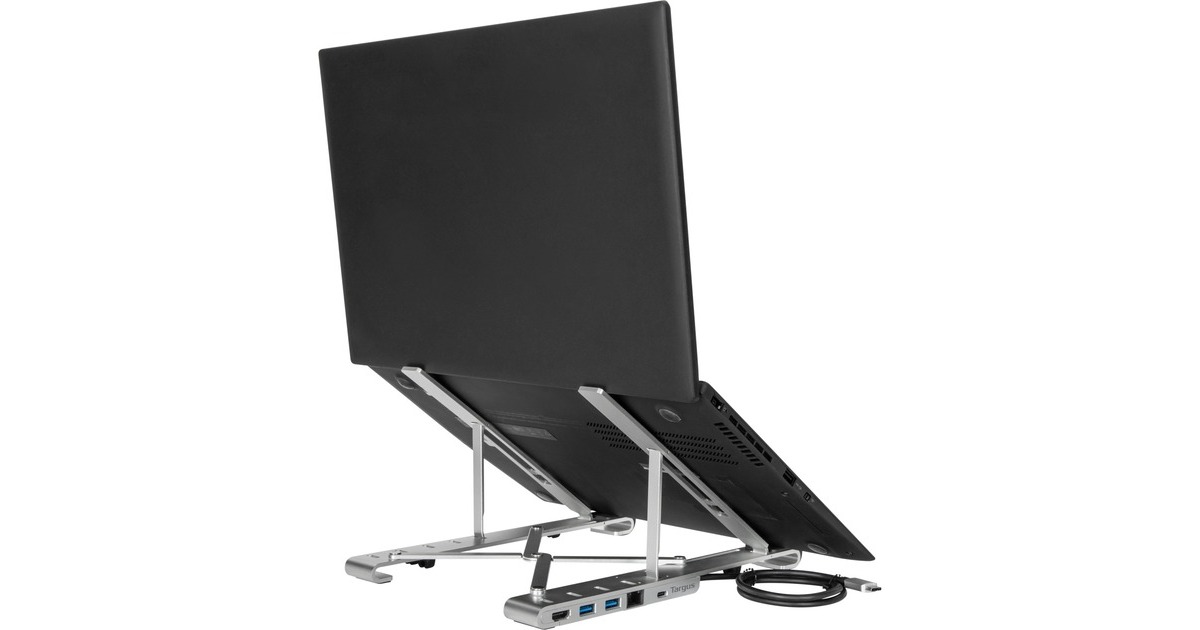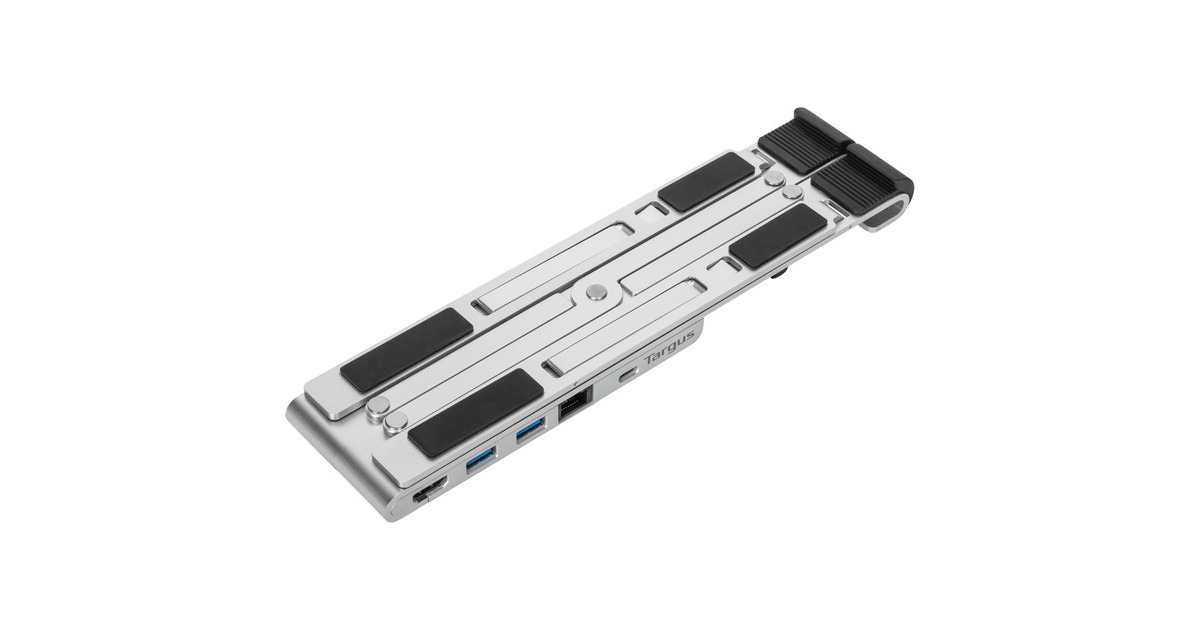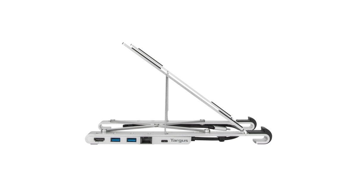 Der Targus Ständer mit Dock besteht aus ultraleichtem, robustem Aluminium und kann dank seines flexiblen Designs eingefaltet und einfach transportiert werden. Der Ständer verfügt neben seiner Hauptfunktion zum Halten des Notebooks auch über eine eingebaute Dockingstation mit HDMI, USB-A sowie USB-C und einem RJ-45 Port. Der integrierte USB-C Port kann angeschlossene Geräte mit bis zu 100 Watt aufladen, ohne das ein zweites Netzteil erforderlich ist.Art.-Nr.: 1823287