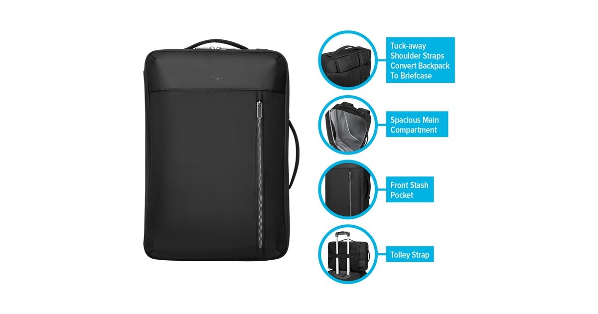 Der Urban Convertible Rucksack ist praktisch und vielseitig. Er schützt das Notebook und bietet eine anpassungsfähige Tragelösung für alles, was der Tag so bereithält. Mit seinen versenkbaren Schultergurten und dem eleganten Seitengriff lässt sich der Rucksack nahtlos von einem geschäftigen Pendler in einen Profi verwandeln und vom Rucksack in eine Aktentasche verwandeln. Mit klaren Linien und einem minimalistischen Innenleben bietet der Rucksack in einem leichten Rahmen den notwendigen Schutz und die nötige Organisation. Eine Vordertasche mit Reißverschluss ist so positioniert, dass man schnell darauf zugreifen kann. Der Urban Convertible wurde entwickelt, um einem mobilen Lebensstil gerecht zu werden. Der Rucksack verfügt über konturierte Schultergurte und eine gepolsterte Rückseite für mehr Komfort sowie über einen Trolley-Gurt.Art.-Nr.: 1730845