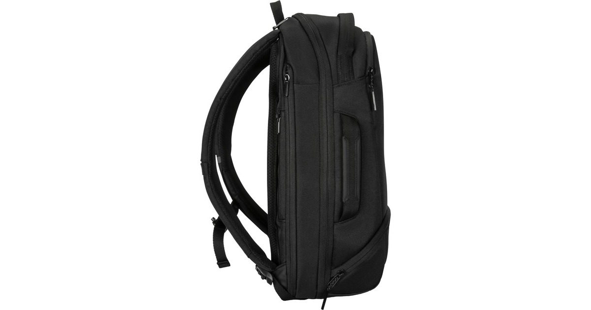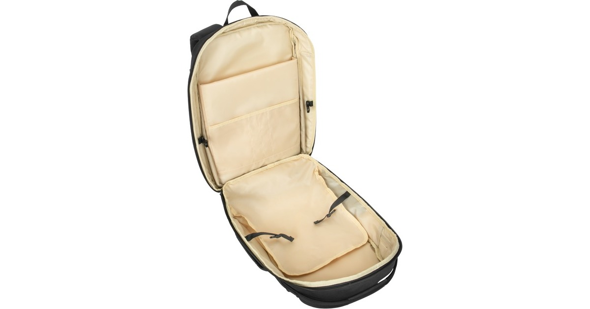 Die stromlinienförmige Konstruktion des Targus Work+ Compact 25L Rucksack bietet in seinem gepolsterten Hauptfach mit Schnellverschluss zur Kapazitätserweiterung einen stilvollen Platz für die wichtigsten Dinge des Tages. In der dafür vorgesehenen Tasche lässt sich eine Trinkflasche verstauen, damit Sie man immer genug Flüssigkeit dabeihat. In dem gefütterten, belüfteten Seitenfach können Ersatzschuhe getrennt von allem anderen in der Tasche aufbewahren werden. Ob Regen oder Sonnenschein, diese leichte Tasche besteht aus wasserabweisenden Materialien und schützt Technik vor den Elementen. Der Rucksack lässt sich von oben und flach beladen, verfügt über zwei zusätzliche Griffe und einen Trolley-Gurt, mit dem er bequem am Rollgepäck befestigt werden kann.Art.-Nr.: 1808638