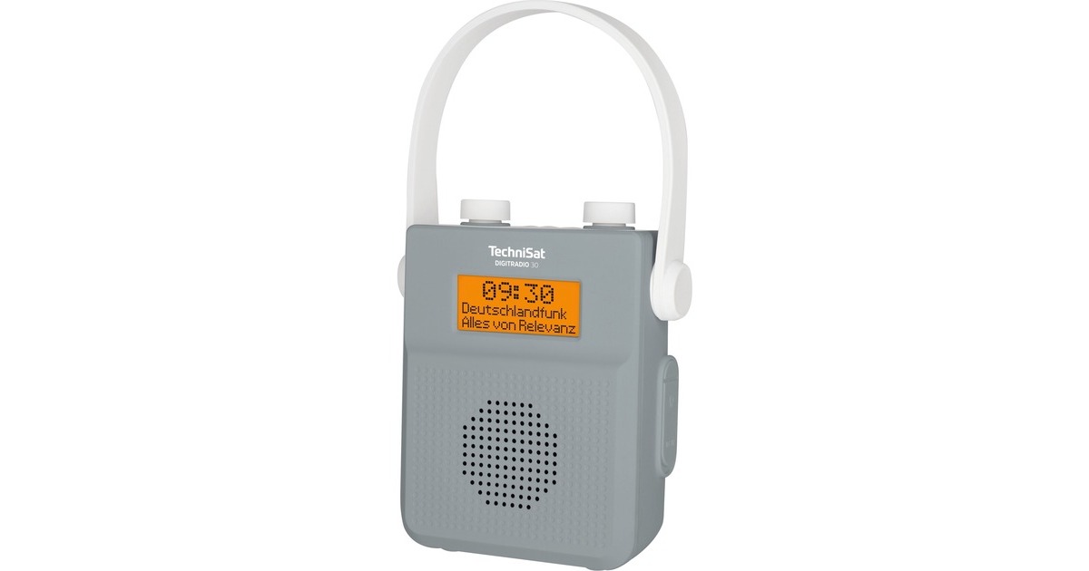 Das TechniSat DIGITRADIO 30 ist ein portables Radio, welches dank IPX5 Schutzklasse auch unter der Dusche oder am Pool genutzt werden kann. Der DIGITRADIO 30 empfängt sowohl UKW als auch DAB+ Signale und erreicht durch den großzügigen Akku Wiedergabelaufzeiten von bis zu 15 Stunden. Auf dem beleuchteten Uhrzeit wird die aktuelle Zeit sowie Senderinformationen angezeigt. Durch den praktischen Tragegriff lässt sich das DIGITRADIO 30 einfach transportieren aber auch optimal in der Dusche aufhängen.Art.-Nr.: 1602416