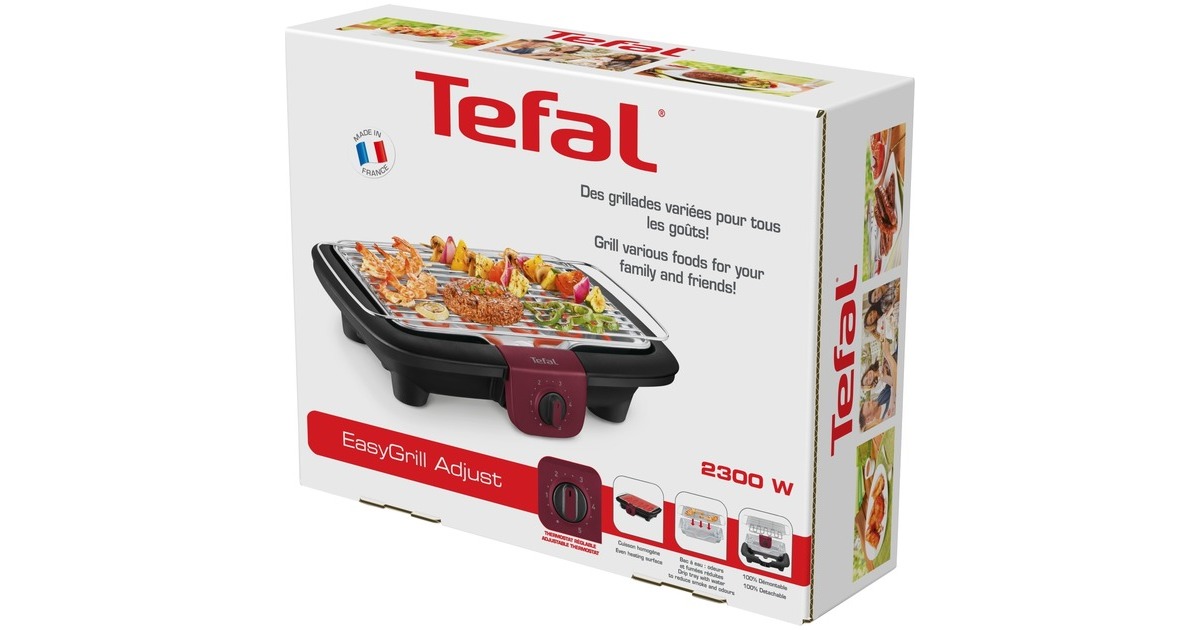 Der EasyGrill Red BG90E5 von Tefal erzielt dank der hohen Leistung von 2.300 Watt und dem einstellbaren Thermostat perfekte Grillergebnisse. Seine kompakte Größe macht ihn zum perfekten Tischgrill für einen kleinen Balkon, zum Campen oder für einen kleinen Garten. Das ausgeklügelte Tropfschalen-System und die wassergefüllte Tropfschale begrenzt die Geruchs- und Rauchentwicklung. Der elegante EasyGrill Adjust Red BG90E5 ist vollständig zerlegbar und lässt sich so leicht verstauen. Zur einfachen Reinigung sind der vernickelte Grillrost und die Tropfschale außerdem spülmaschinenfest.Art.-Nr.: 1491386