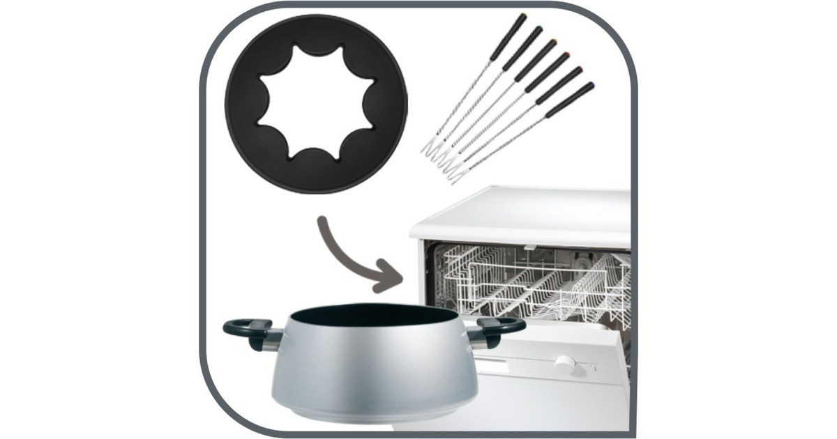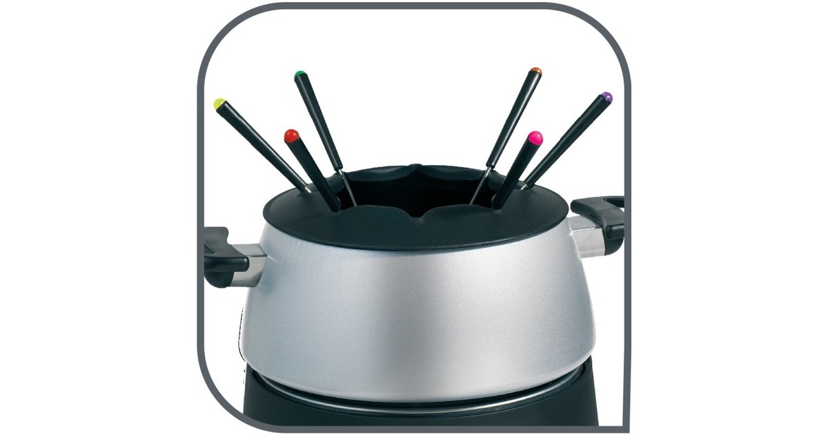 Das Tefal Fondue EF 3000.10 hat einen großen antihaftbeschichteten Aluminium-Topf mit wärmeisolierten Griffen. Desweiteren besitzt das Fondue EF 3000.10 sechs Fonduegabeln mit wärmeisolierten Griffen und einen Thermoplastiksockel in modernem Design. Der Spritzschutz mit Gabel-Halter vermeidet unnötige Spritzer und bringt Ordnung in den Fonduetopf. Das Fondue EF 3000.10 ist für sechs Personen geeignet. Mit dem regelbaren Thermostat lässt sich die optimale Gartemperatur einstellen.Art.-Nr.: 950902