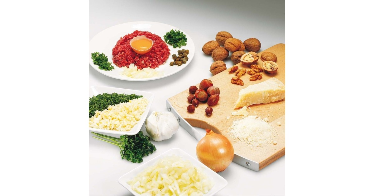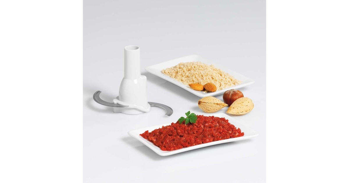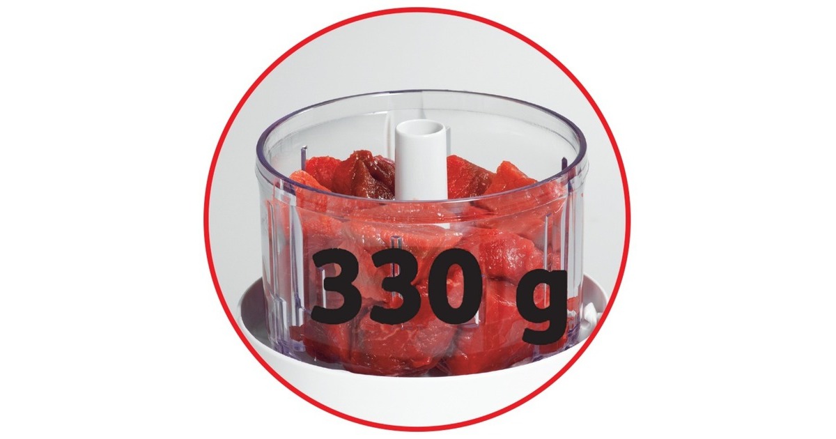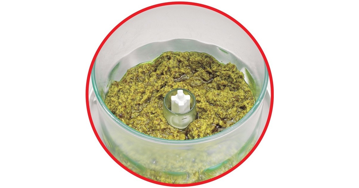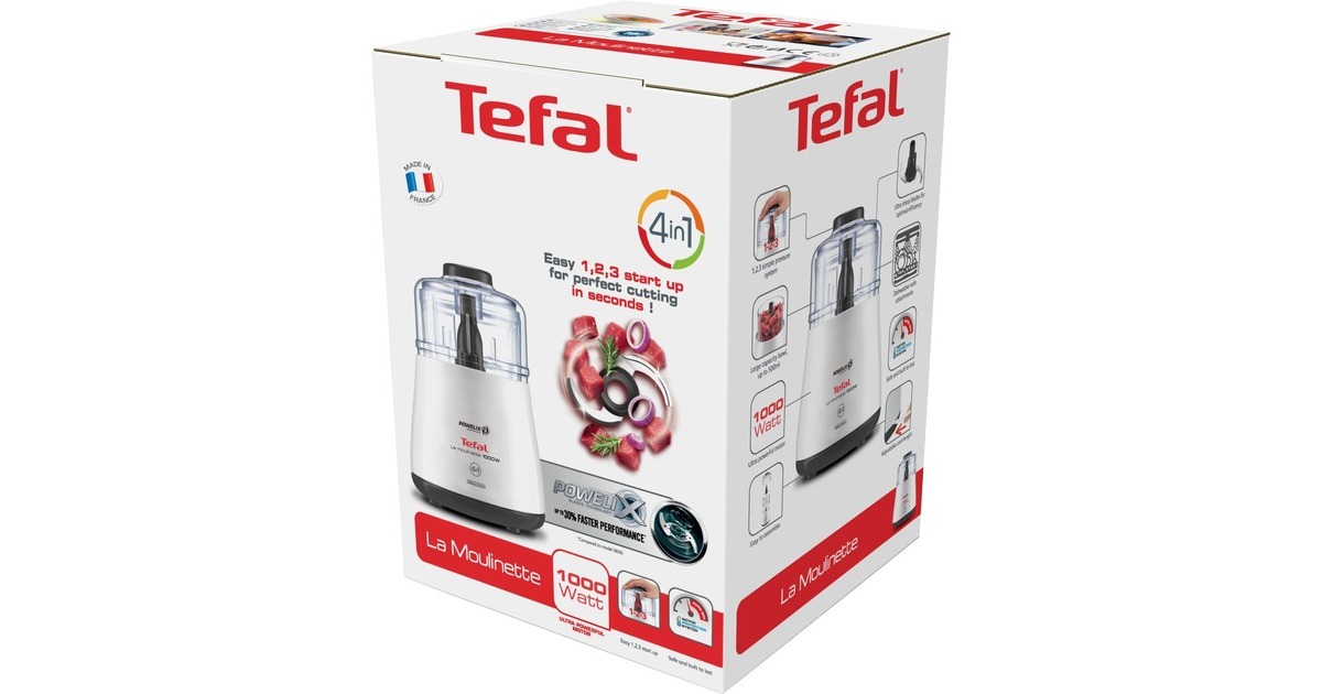 Der Tefal La Moulinette 1000 ist ein Zerkleinerer mit einfacher Bedienung nach dem "1-2-3" Prinzip durch Drücken auf den Deckel. Mit dem Tefal La Moulinette 1000 macht man aus 300 Gramm Fleisch innerhalb von sechs Sekunden Hackfleisch oder zerkleinert Zwiebeln, Knoblauch, Kräuter, Nüsse oder Käse. Durch den transparenten Kunststoffbehälter kann man die Zubereitung problemlos beobachten. Der Zerkleinerungsbehälter ist auch für die Zubereitung von Pesto oder Guacamole geeignet.Art.-Nr.: 1309215