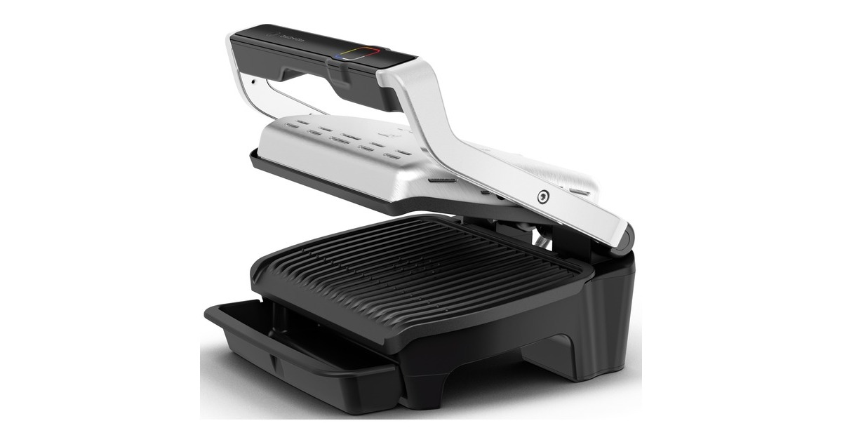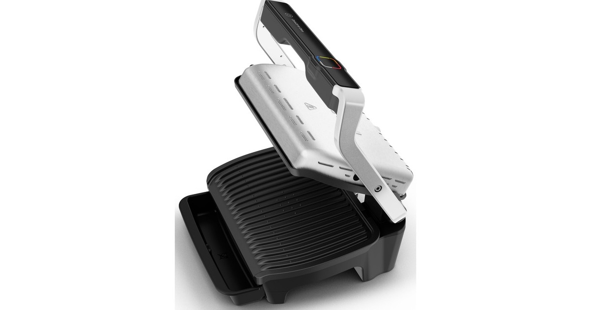 Der Tefal Kontaktgrill Optigrill Elite GC750D wird mit seiner Leistung von 2.000 Watt sehr schnell heiß und kommt auch mit größeren Mengen Grillguts zurecht. Mit dem raschen Garen von beiden Seiten spart der Kontaktgrill Zeit. Er hat eine automatische Anpassung der Grilltemperatur und Grillzyklen je nach Dicke und Art des Grillguts. Das neue Display mit intuitivem Grillassistenten führt Schritt für Schritt durch ein perfektes Grillerlebnis: Man weiß genau, wann man das Fleisch auflegen und entfernen muss, egal ob es lieber blutig, medium oder durchgebraten sein soll. Außerdem kann man mit dem OptiGrill Elite perfekt anbraten, dank der neuen Grillboost-Funktion, genau wie mit einem Restaurant-Grill. Zwölf automatische Programme bieten Tag für Tag endlose Möglichkeiten. Der elektrische Kontaktgrill Optigrill Elite GC750D grillt nicht nur Fleisch, sondern auch köstliches Hähnchen, Fisch, Gemüse und mehr. Gleichzeitig verwandelt das optional erhältliche "Snacking & Baking"-Zubehör den Grill für die Zubereitung von unterschiedlichen süßen und herzhaften Gerichten, wie Pizzas, Kuchen und Pasteten. Außerdem gibt es noch einen manuellen Modus, damit man die verschiedensten Lebensmittel genau nach eigenem Geschmack zubereiten kann. Der OptiGrill Elite wird inklusive Rezeptbuch und kostenloser App geliefert für endlos viele Grillmöglichkeiten.Art.-Nr.: 1756870