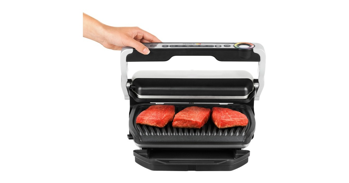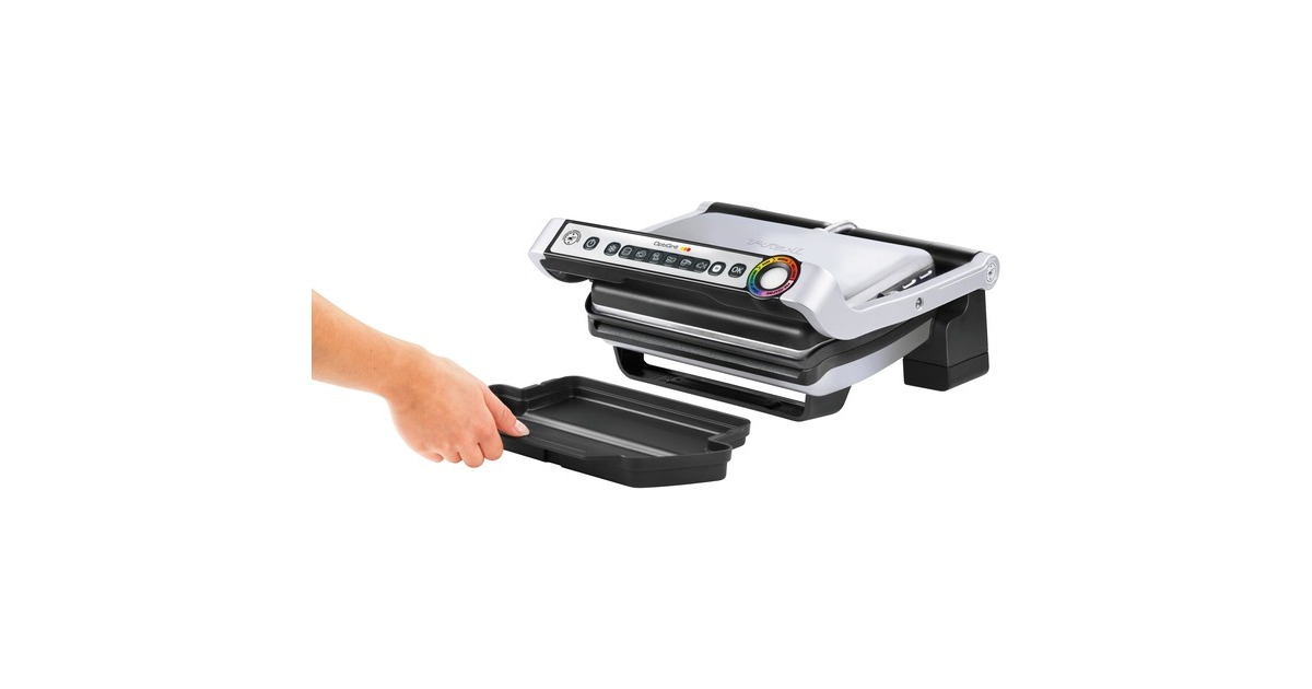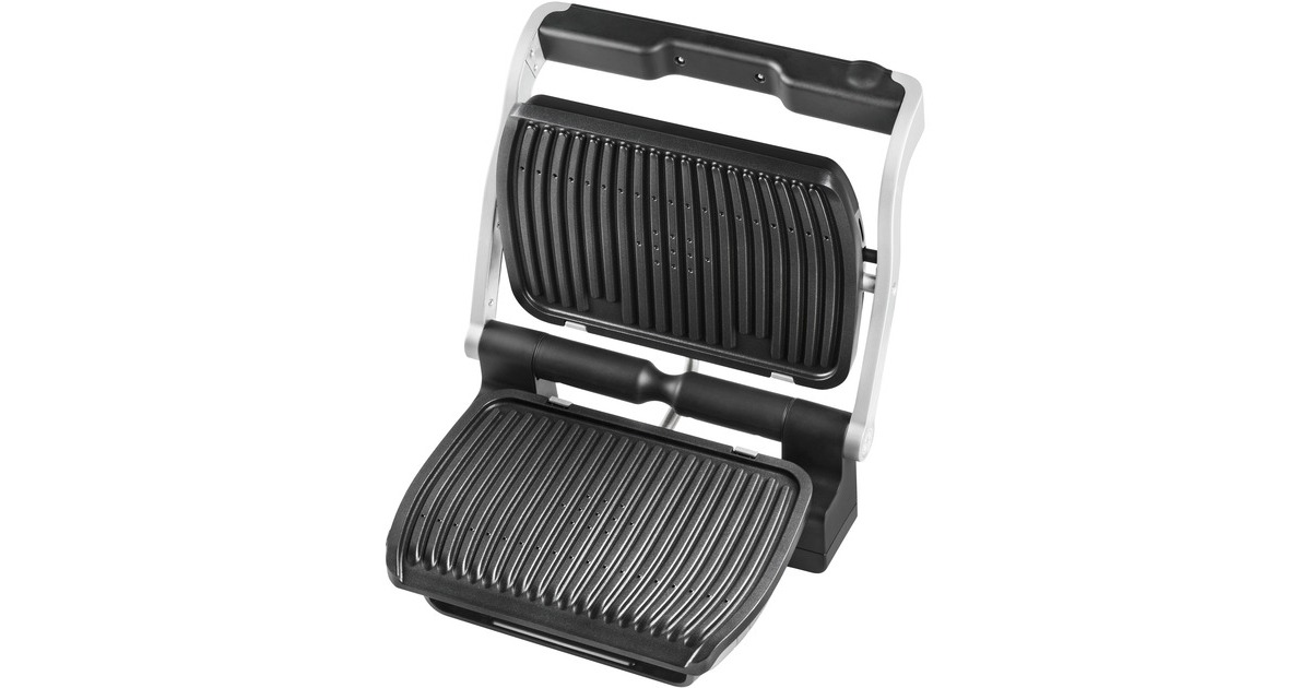 Der Tefal Kontaktgrill Optigrill GC750D wird mit seiner Leistung von 2.000 Watt sehr schnell heiß und kommt auch mit größeren Mengen Grillguts zurecht. Mit dem raschen Garen von beiden Seiten spart der Kontaktgrill Zeit. Er hat eine automatische Anpassung der Grilltemperatur und Grillzyklen je nach Dicke und Art des Grillguts. Das neue Display mit intuitivem Grillassistenten führt Schritt für Schritt durch ein perfektes Grillerlebnis: Man weiß genau, wann man das Fleisch auflegen und entfernen muss, egal ob es lieber blutig, medium oder durchgebraten sein soll. Außerdem kann man mit dem OptiGrill perfekt anbraten, dank der neuen Grillboost-Funktion, genau wie mit einem Restaurant-Grill. Sechs automatische Programme bieten Tag für Tag endlose Möglichkeiten. Der elektrische Kontaktgrill Optigrill GC750D grillt nicht nur Fleisch, sondern auch köstliches Hähnchen, Fisch, Gemüse und mehr. Gleichzeitig verwandelt das optional erhältliche "Snacking & Baking"-Zubehör den Grill für die Zubereitung von unterschiedlichen süßen und herzhaften Gerichten, wie Pizzas, Kuchen und Pasteten. Außerdem gibt es noch zwei zusätzliche Programme: einen Modus zum Auftauen von Gefriergut und einen manuellen Modus, damit man die verschiedensten Lebensmittel genau nach eigenem Geschmack zubereiten kann.Art.-Nr.: 1731940