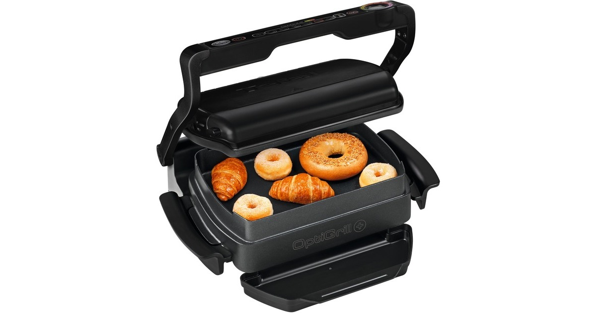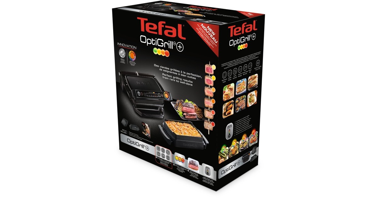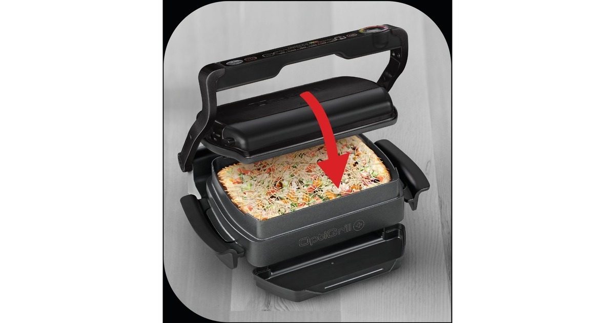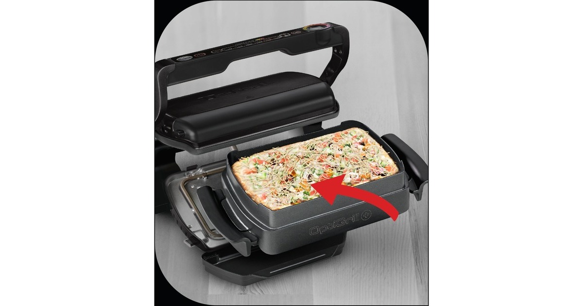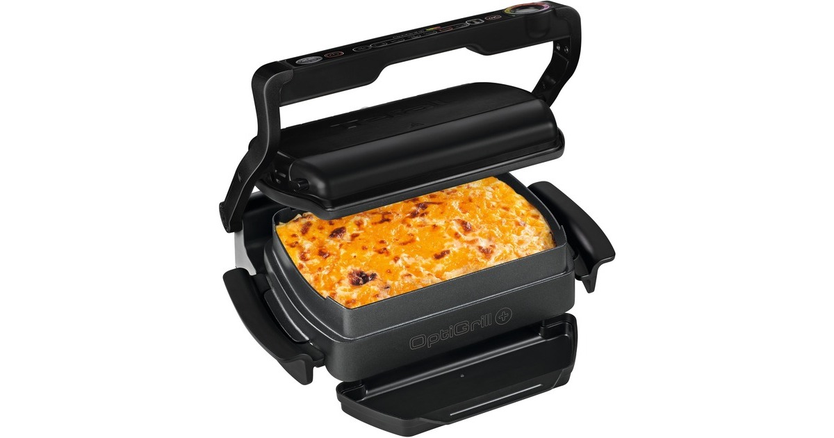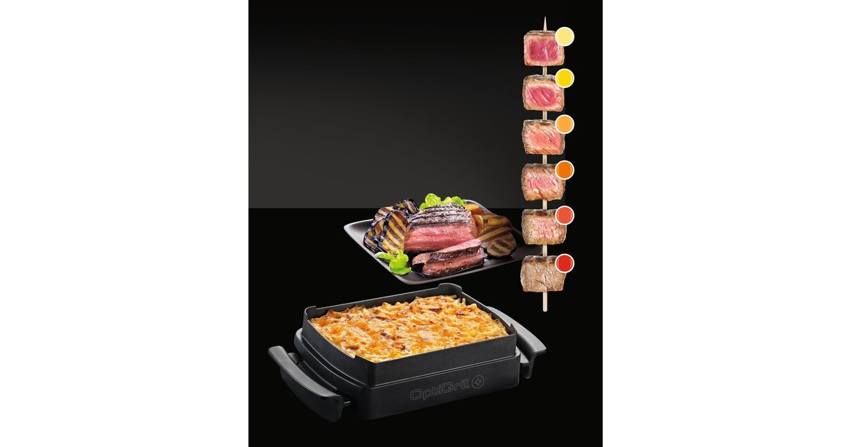 Bei dem OptiGrill+ Snacking & Baking GC7148 von Tefal sorgt intelligente Technologie für köstliche Garergebnisse. Er bietet mit dem neuen Zubehör unendlich viele Zubereitungsmöglichkeiten wie backen, aufwärmen oder gratinieren. Mit der Technologie "Automatic Sensor Cooking" werden Garzeit und -temperatur auf Grundlage von 6 Garprogrammen (Burger, Steaks, Sandwiches, Würstchen, Fisch, Geflügel) automatisch je nach Dicke und Menge des Grillguts reguliert. Zusätzlich gibt es einen Modus zum Auftauen von Gefriergut. Eine direkte Überwachung ist über den Lichtindikator möglich: Violett für Vorwärmen, blau, dann grün zum Garbeginn, gelb, wenn das Grillgut blutig gebraten ist, orange für medium und rot für durchgebraten. Man muss einfach nur den Deckel anheben und das Fleisch herausnehmen, wenn es fertig ist. Der Rest kann weiter garen. Mit dem zusätzlichen manuellen Modus mit 4 regulierbaren Temperaturen kann man verschiedenste Lebensmittel, auch Früchte und Gemüse, genau so zubereiten, wie es dem eigenen Geschmack entspricht.Art.-Nr.: 1352218