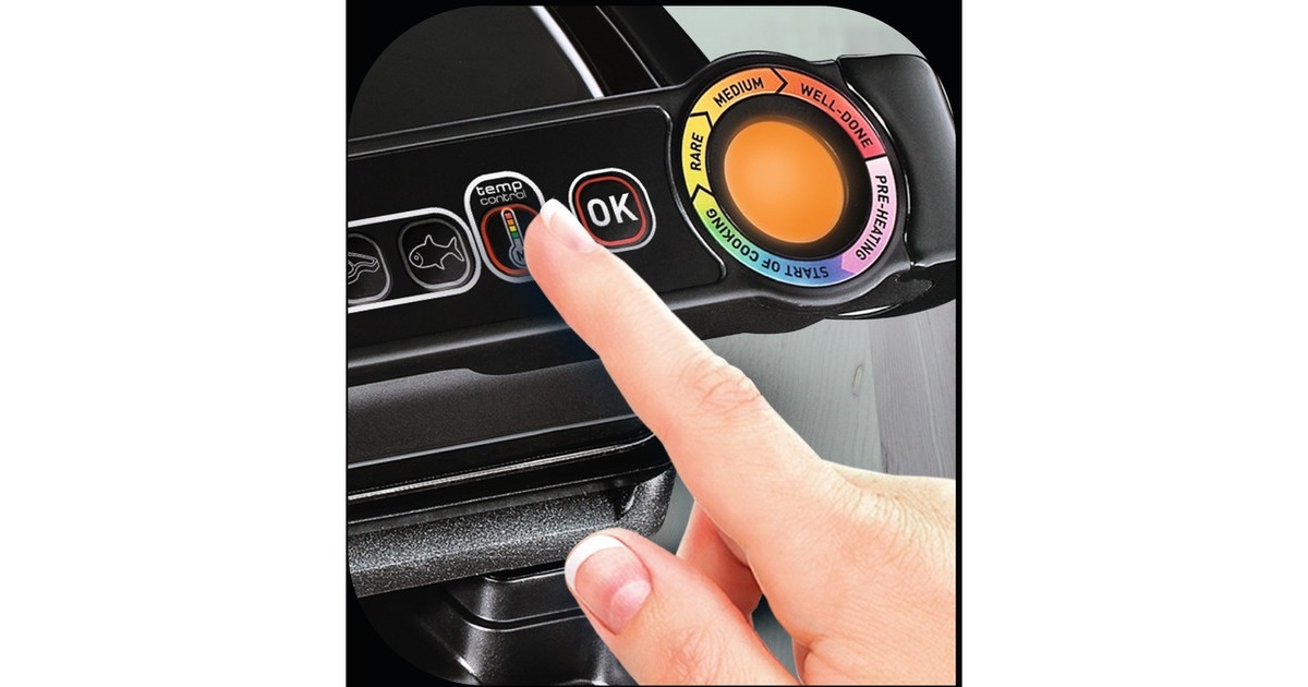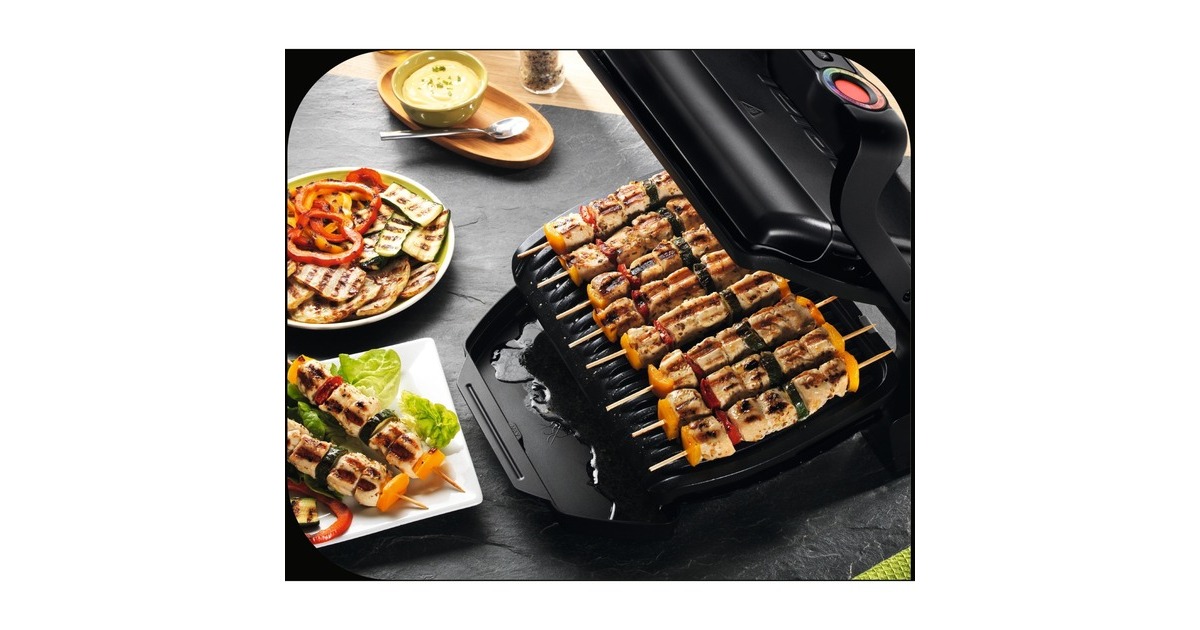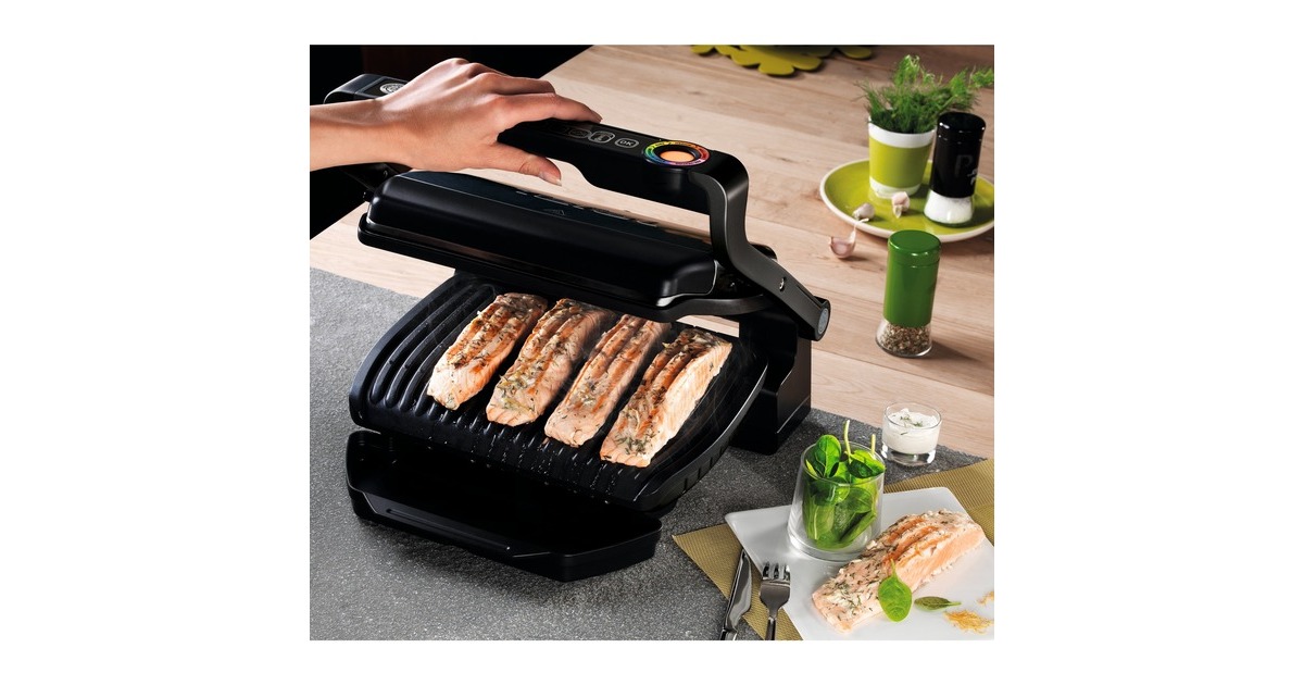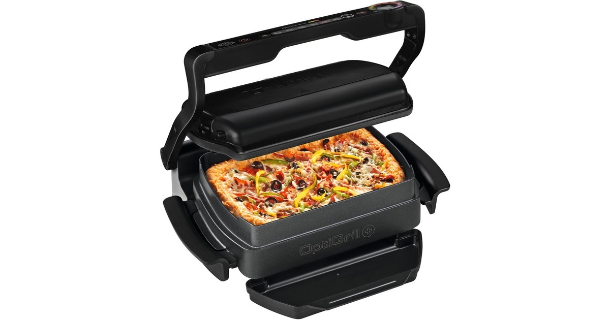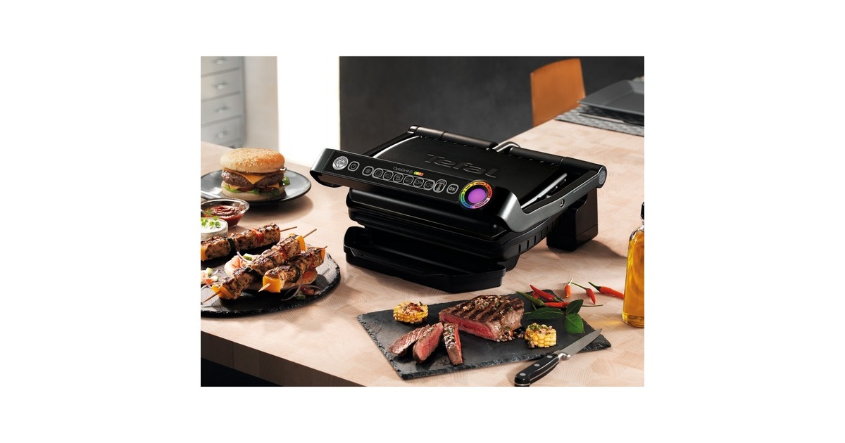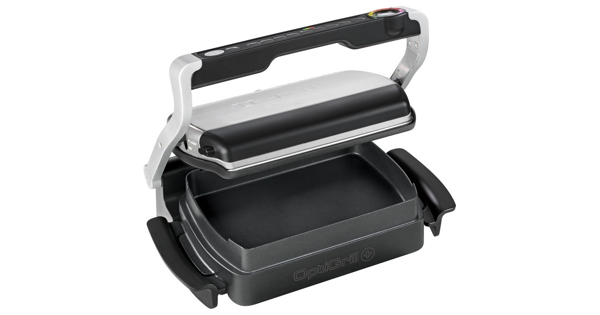 Bei dem OptiGrill+ Snacking & Baking GC7148 von Tefal sorgt intelligente Technologie für köstliche Garergebnisse. Er bietet mit dem neuen Zubehör unendlich viele Zubereitungsmöglichkeiten wie backen, aufwärmen oder gratinieren. Mit der Technologie "Automatic Sensor Cooking" werden Garzeit und -temperatur auf Grundlage von 6 Garprogrammen (Burger, Steaks, Sandwiches, Würstchen, Fisch, Geflügel) automatisch je nach Dicke und Menge des Grillguts reguliert. Zusätzlich gibt es einen Modus zum Auftauen von Gefriergut. Eine direkte Überwachung ist über den Lichtindikator möglich: Violett für Vorwärmen, blau, dann grün zum Garbeginn, gelb, wenn das Grillgut blutig gebraten ist, orange für medium und rot für durchgebraten. Man muss einfach nur den Deckel anheben und das Fleisch herausnehmen, wenn es fertig ist. Der Rest kann weiter garen. Mit dem zusätzlichen manuellen Modus mit 4 regulierbaren Temperaturen kann man verschiedenste Lebensmittel, auch Früchte und Gemüse, genau so zubereiten, wie es dem eigenen Geschmack entspricht.Art.-Nr.: 1352218