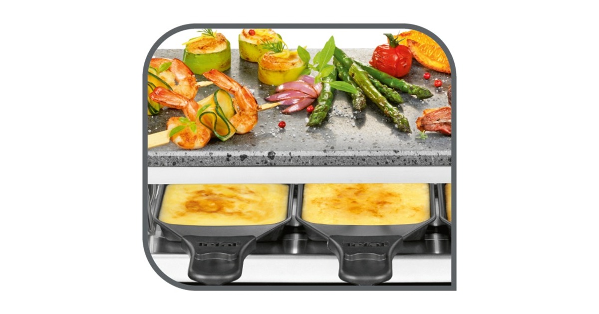 Der Raclette-Grill Pierrade PR457B von Tefal verspricht vergnügliches Kochen für lange Winterabende. Er vereint das Beste aus den Welten von Pierrade (Grillen auf heißem Stein) und klassischem Raclette mit Pfännchen, zur gleichen Zeit. Der Raclette-Grill Pierrade bringt 10 antihaftversiegelte Pfännchen und einen Schaber mit, für unvergessliche Abende in großer geselliger Runde mit bis zu 10 Personen, mit Familie oder Freunden. Dank des abnehmbaren Stromkabels findet das Gerät in jeder Küche Platz und kann ganz einfach aufbewahrt werden. Das benutzerfreundliche, elegante Gerät kombiniert das Grillen auf heißem Stein und das Raclette-Grillen für gesellige Winterabende mit köstlichem Essen.Art.-Nr.: 100027737