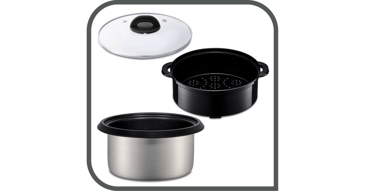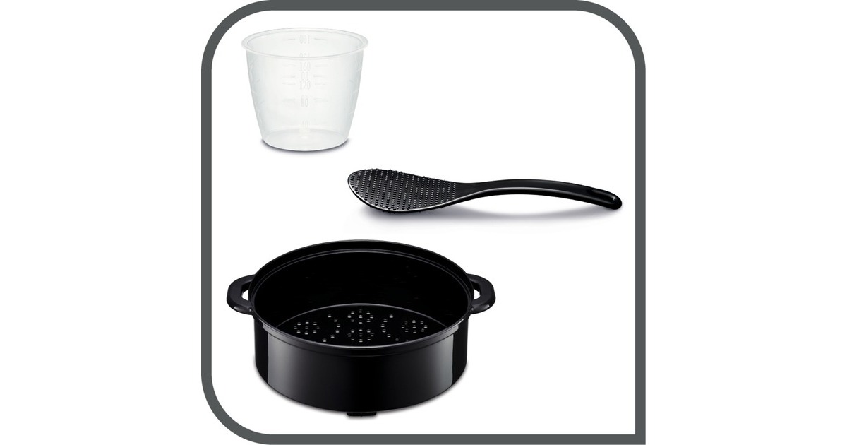 Eine große Kapazität, umfangreiches Zubehör sowie die praktische automatische Warmhaltefunktion am Ende der Kochzeit zeichnen den Tefal Reiskocher RK1011 aus. Er hat einen Dampfgareinsatz zur Zubereitung von Gemüse, einen herausnehmbaren antihaftbeschichteten Innenbehälter, einen Glasdeckel und Plastikgriffe zum sicheren Transportieren.Art.-Nr.: 1309211