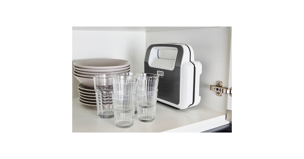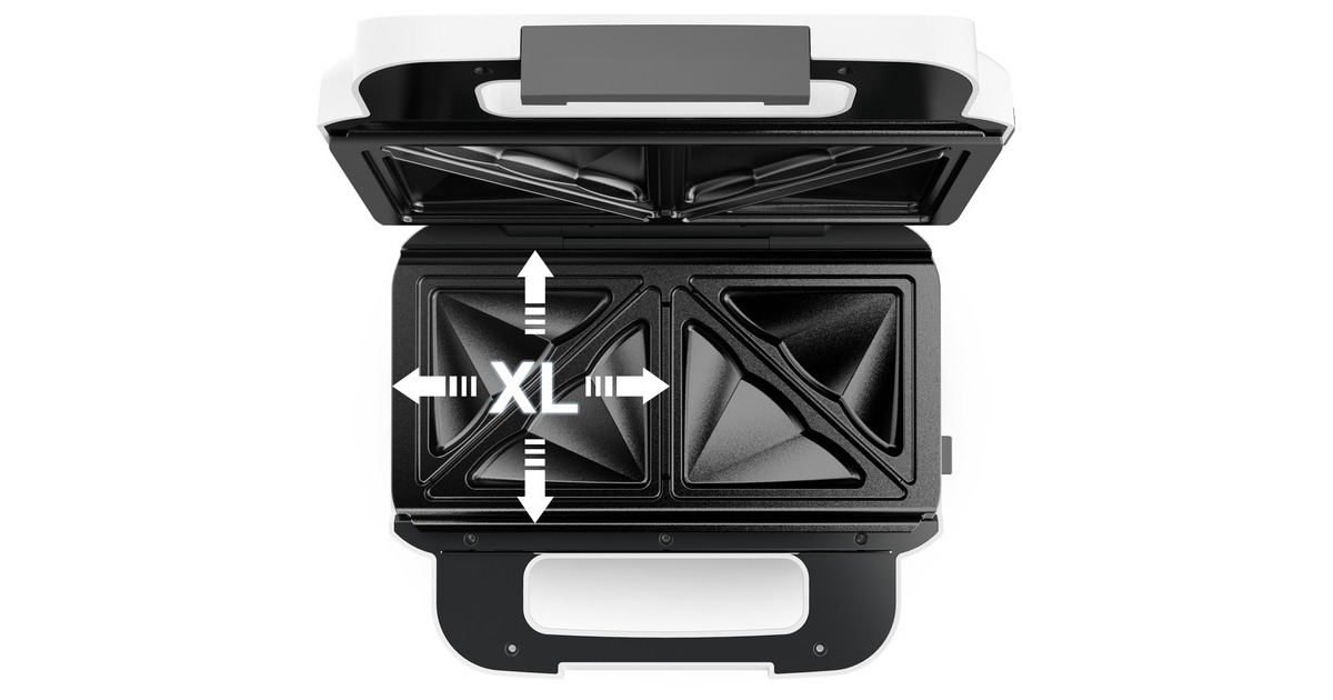Der Tefal Snack XL Sandwich- und Waffelmaker bringt großzügig gefüllte Gourmet-Snacks in die Küche. Mit seinen extragroßen und extratiefen Platten verwandelt der Snack XL alle Lieblingszutaten in köstliche, großzügig gefüllte Sandwichtoasts, die nur darauf warten, verspeist zu werden. Von mehrlagigen Club-Sandwiches bis zu reich gefüllten Sandwich-Toasts und geschichteten Brotsnacks ist er perfekt für viele Größen und Arten von Brot geeignet. Darüber hinaus lässt sich der Snack XL dank der zwei auswechselbaren Platten im Handumdrehen in ein Waffeleisen verwandeln; für dicke belgische Waffeln, die nur auf ihre schmackhaften Toppings warten. Mit den spülmaschinenfesten Platten lässt er sich rasch und einfach reinigen. Dank Kabelaufwicklung ist das leistungsstarke Kombigerät aus Sandwichmaker und Waffeleisen auch platzsparend in aufrechter Position zu verstauen.Art.-Nr.: 1756985