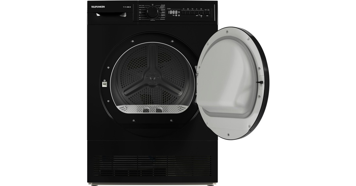 Der Kondensationstrockner Telefunken T-11-400-B überzeugt mit einer Aufnahmekapazität von bis zu 7 kg an Wäsche und 15 Trockenprogrammen. Über das übersichtliche Bedienpanel mit zentral positioniertem Programmknebel kann der Trockenvorgang ganz einfach eingestellt und die Startzeit um bis zu 23 Stunden im Voraus festgelegt werden. Das LED-Display informiert dabei zuverlässig über die Restzeit des ausgewählten Trockenprogramms. Die Trommelreversierung sorgt für optimale Trockenergebnisse und der Knitterschutz erspart viel Arbeit beim Bügeln. Für optimale Sicherheit im Haushalt sorgt beim T-11-400-B eine Kindersicherung sowie ein Signal bei vollem Kondenswasserbehälter.Art.-Nr.: 100018379