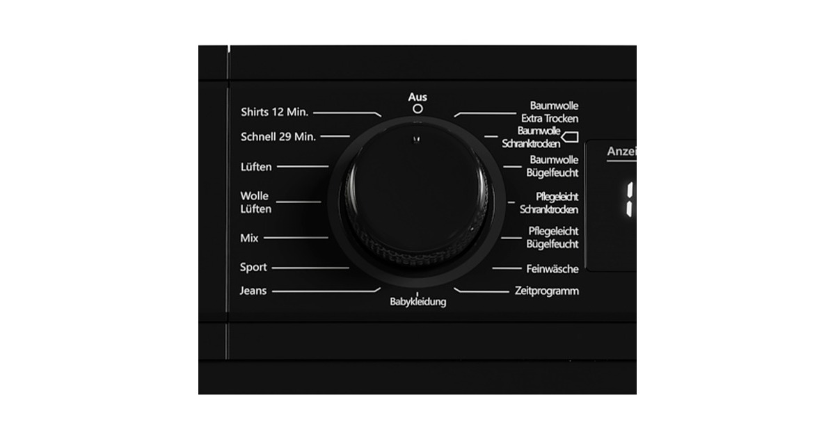 15 Trocken-Programme: Baumwolle Extratrocken, Baumwolle Schranktrocken, Baumwolle Bügelfeucht, Pflegeleicht Schranktrocken, Pflegeleicht Bügelfeucht, Feinwäsche, Mix, Babykleidung, Zeitprogramm, Jeans, Auffrischen, Schnell 29 Min., Hemden/Blusen 12 Min., Sport, Wolle Auffrischen |
