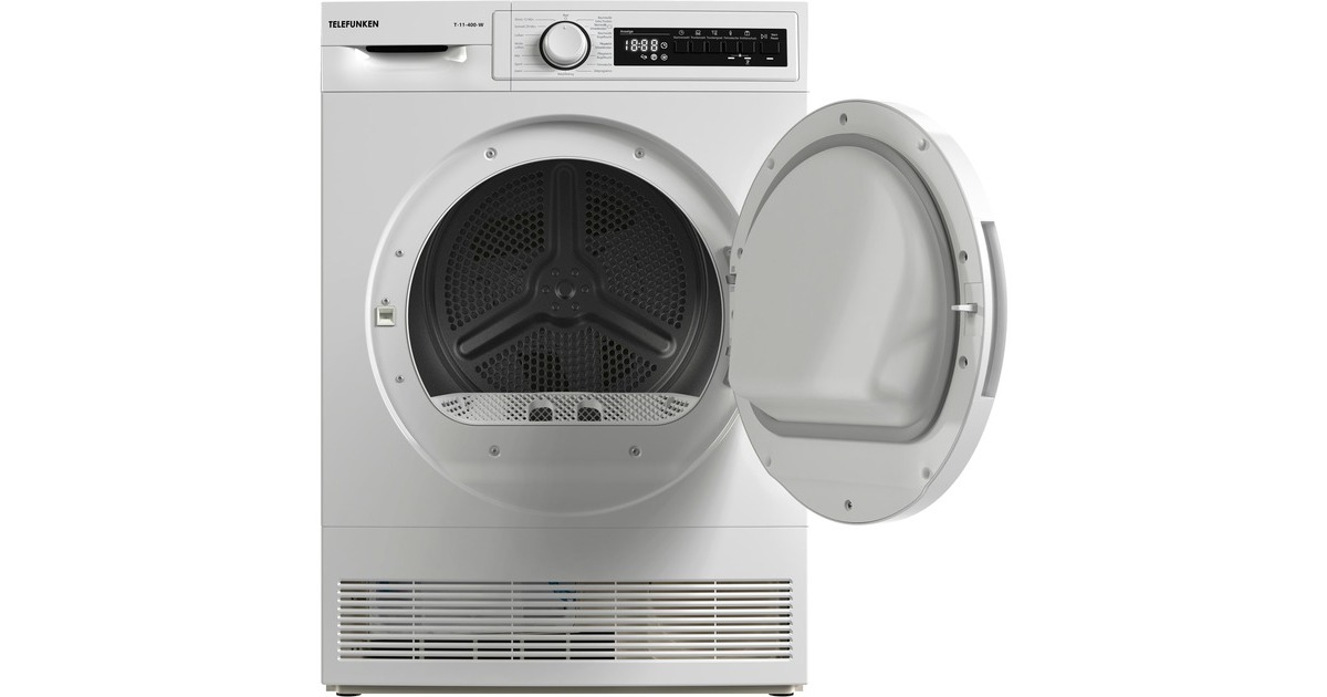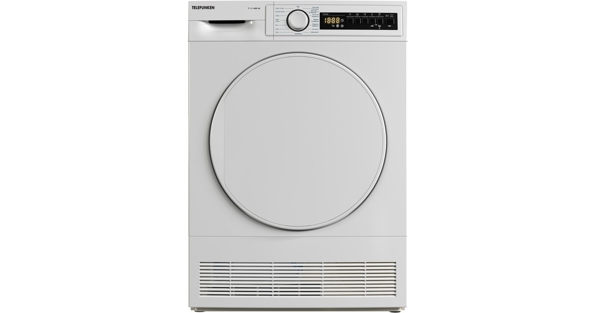 Der Kondensationstrockner Telefunken T-11-400-W überzeugt mit einer Aufnahmekapazität von bis zu 7 kg an Wäsche und 15 Trockenprogrammen. Über das übersichtliche Bedienpanel mit zentral positioniertem Programmknebel kann der Trockenvorgang ganz einfach eingestellt und die Startzeit um bis zu 23 Stunden im Voraus festgelegt werden. Das LED-Display informiert dabei zuverlässig über die Restzeit des ausgewählten Trockenprogramms. Die Trommelreversierung sorgt für optimale Trockenergebnisse und der Knitterschutz erspart viel Arbeit beim Bügeln. Für optimale Sicherheit im Haushalt sorgt beim T-11-400-W eine Kindersicherung sowie ein Signal bei vollem Kondenswasserbehälter.Art.-Nr.: 100018391