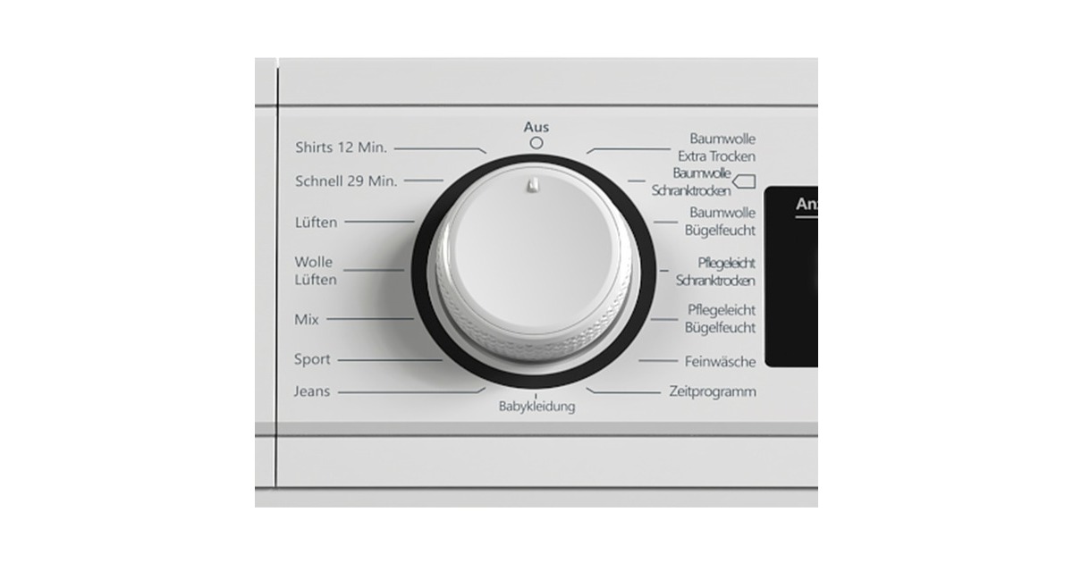 15 Trocken-Programme: Baumwolle Extratrocken, Baumwolle Schranktrocken, Baumwolle Bügelfeucht, Pflegeleicht Schranktrocken, Pflegeleicht Bügelfeucht, Feinwäsche, Mix, Babykleidung, Zeitprogramm, Jeans, Auffrischen, Schnell 29 Min., Hemden/Blusen 12 Min., Sport, Wolle Auffrischen |
